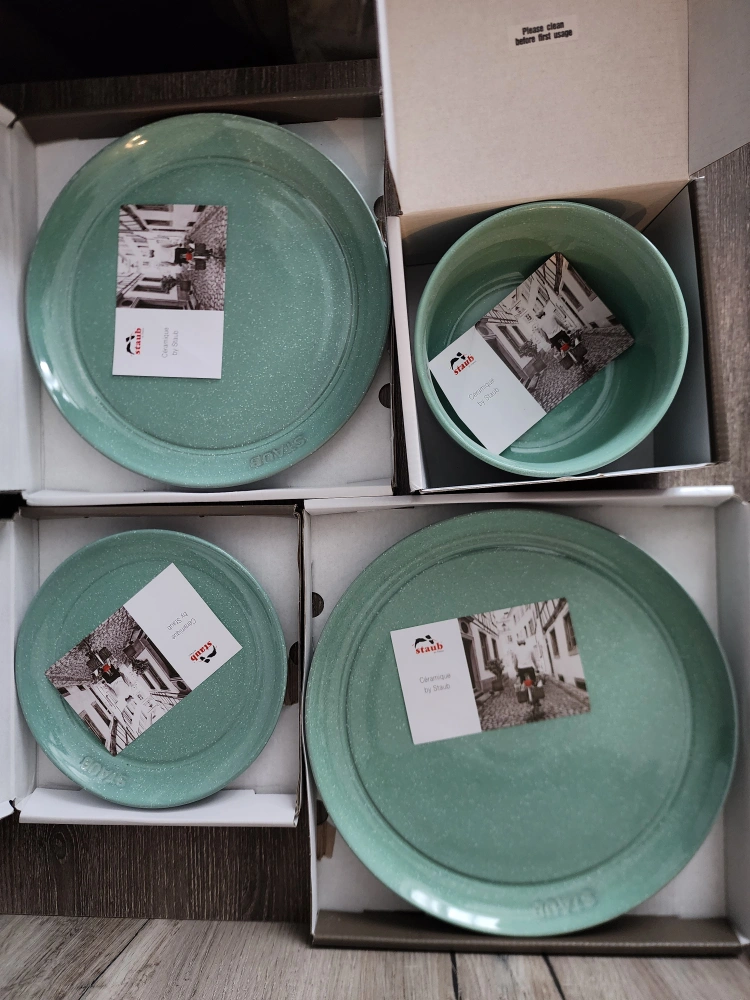 New Staub Ceramic Bowl x1 & Plates x3 Sage Green