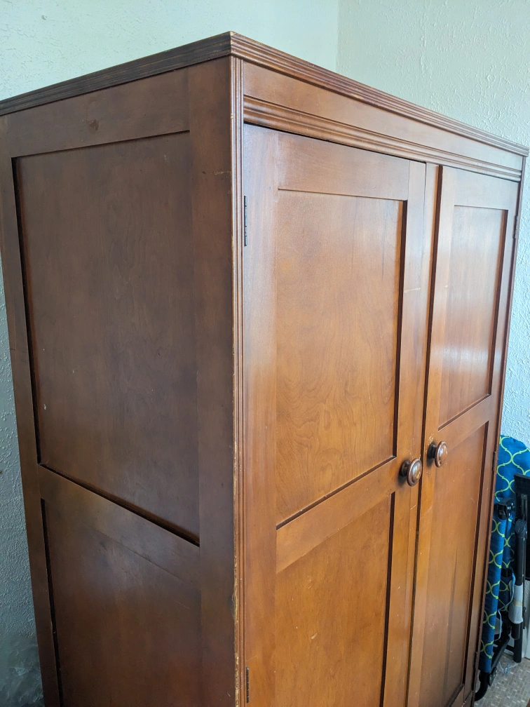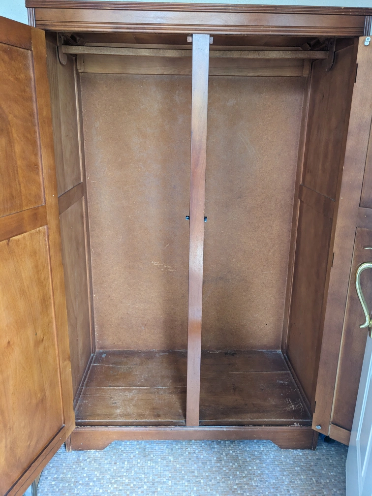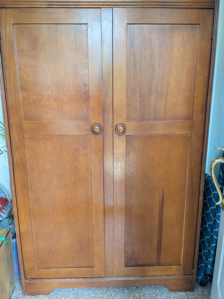 Well loved farmhouse wardrobe. Used for winter coats and storage.