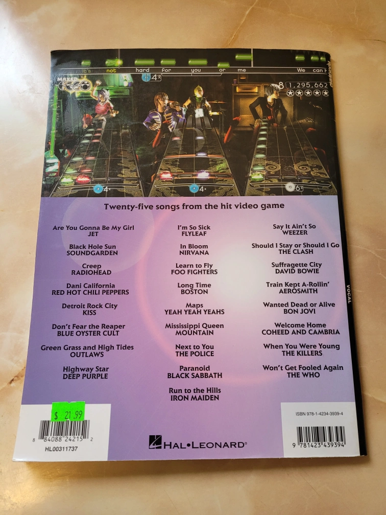From the classic game "Rock Band" is the musical vocal notebook of lyrics from twenty five songs from the hit video game.