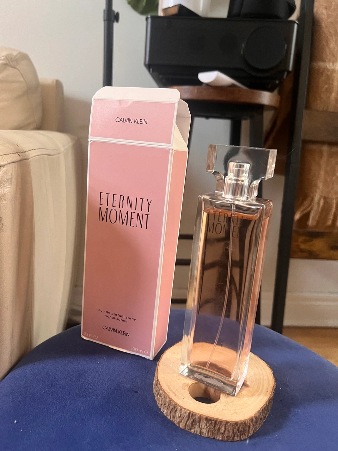 Eternity Moment captures the excitement and exhilaration of that first moment of falling in love. A skipped heartbeat, happy nervousness, and realization of intense desire. Inspired by where passion meets love. This fragrance brings together mouth-watering notes of pomegranate blossom and lychee, interlaced with exhilarating raspberry cashmere, warm rose wood, and passionflower to complement the base of warm, sexy musks. Eternity Moment for Women is an eau de parfum that embodies the mystery of those first moments of true love, where the rest of the world dims to the background and all that exists are two people, intertwined. A spark in each other’s eyes that marks a recognition running inexplicably deep. A sense of knowing the depths of another soul