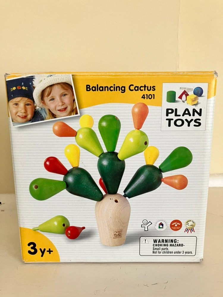 Wooden Plan Toys Balancing Cactus, toddler/young child toy. The box is a little frayed but the toy itself is in perfect condition, no chips or dents in any of the pieces.