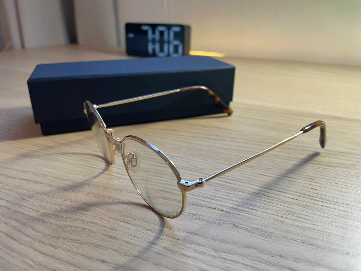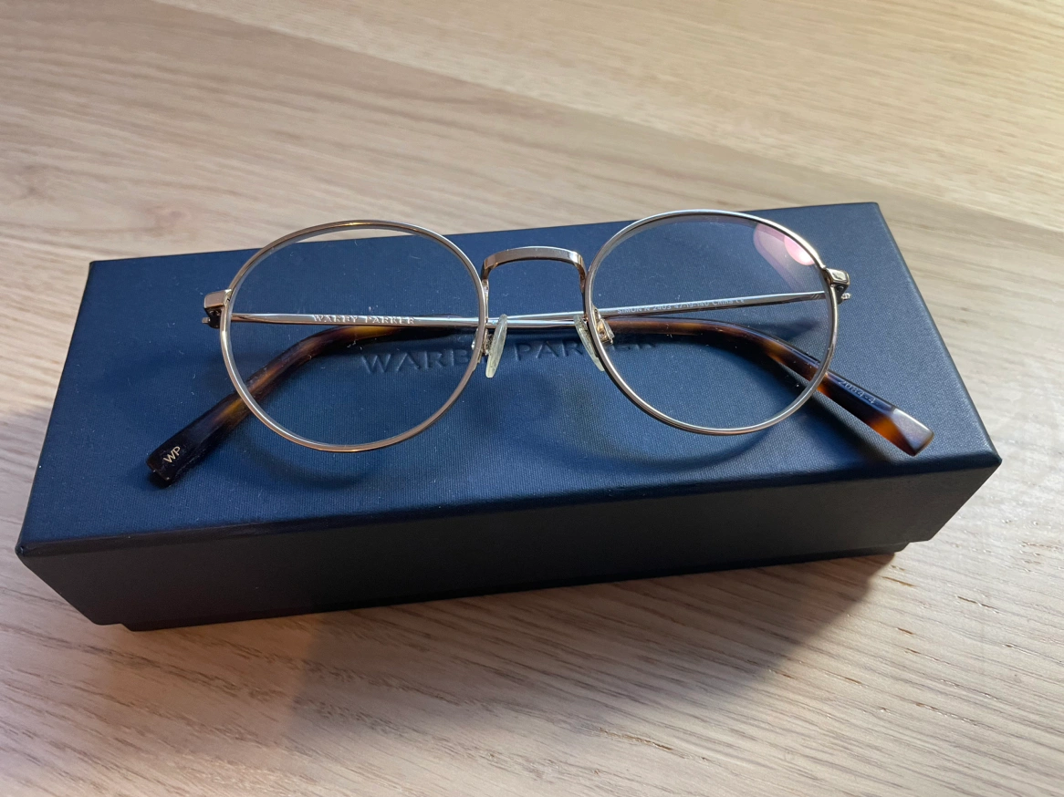 Warby Parker polish gold finish glasses.