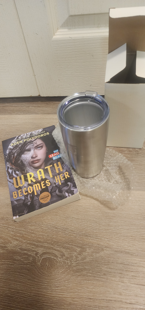 Book , a stainless cup and light.