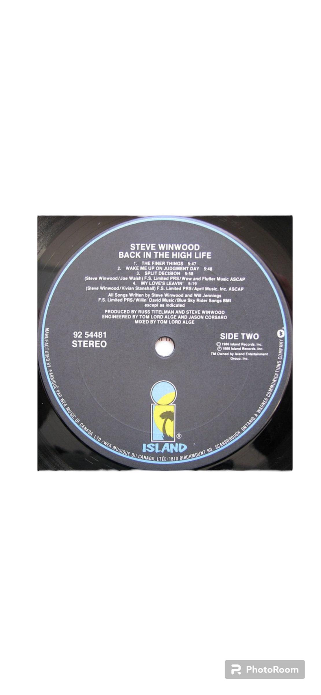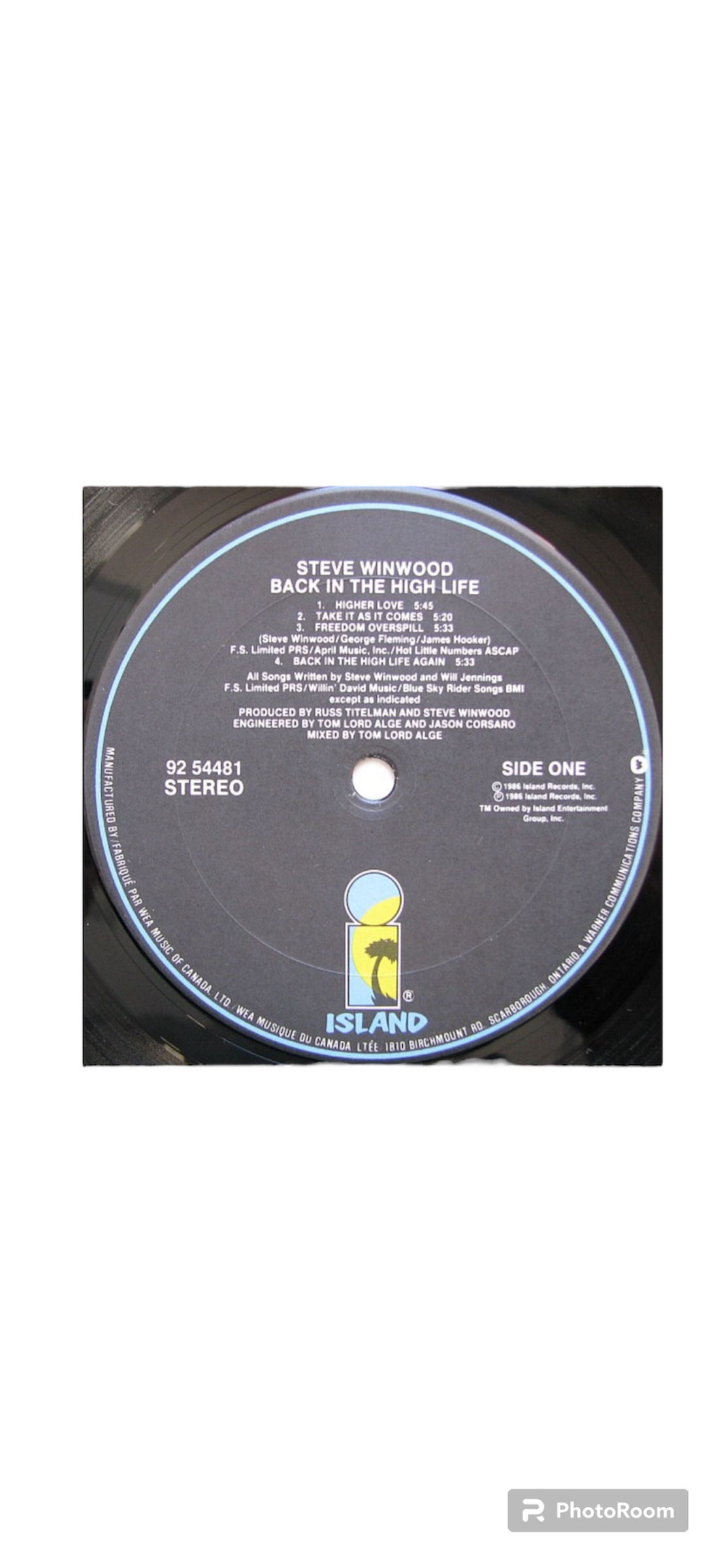 483Back in the High Life is the fourth solo album by English singer, songwriter, and multi-instrumentalist Steve Winwood, released on 30 June 1986 Playtested Sleeve VG+ Media VG+
