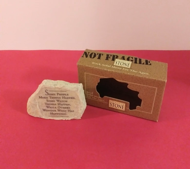 A lovely new small rock with an inspirational message from Etched in Stone. The rock is heavy, and comes in a presentation box. Size: 4.5"×3.25"×1.75". Available for pick up in Mississauga Square One near Celebration Square. Payment: Cash or e-Transfer.