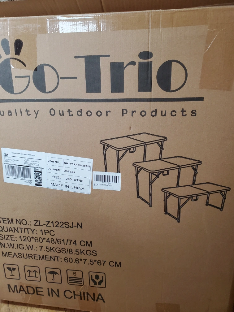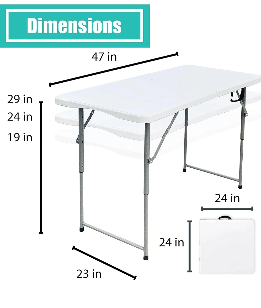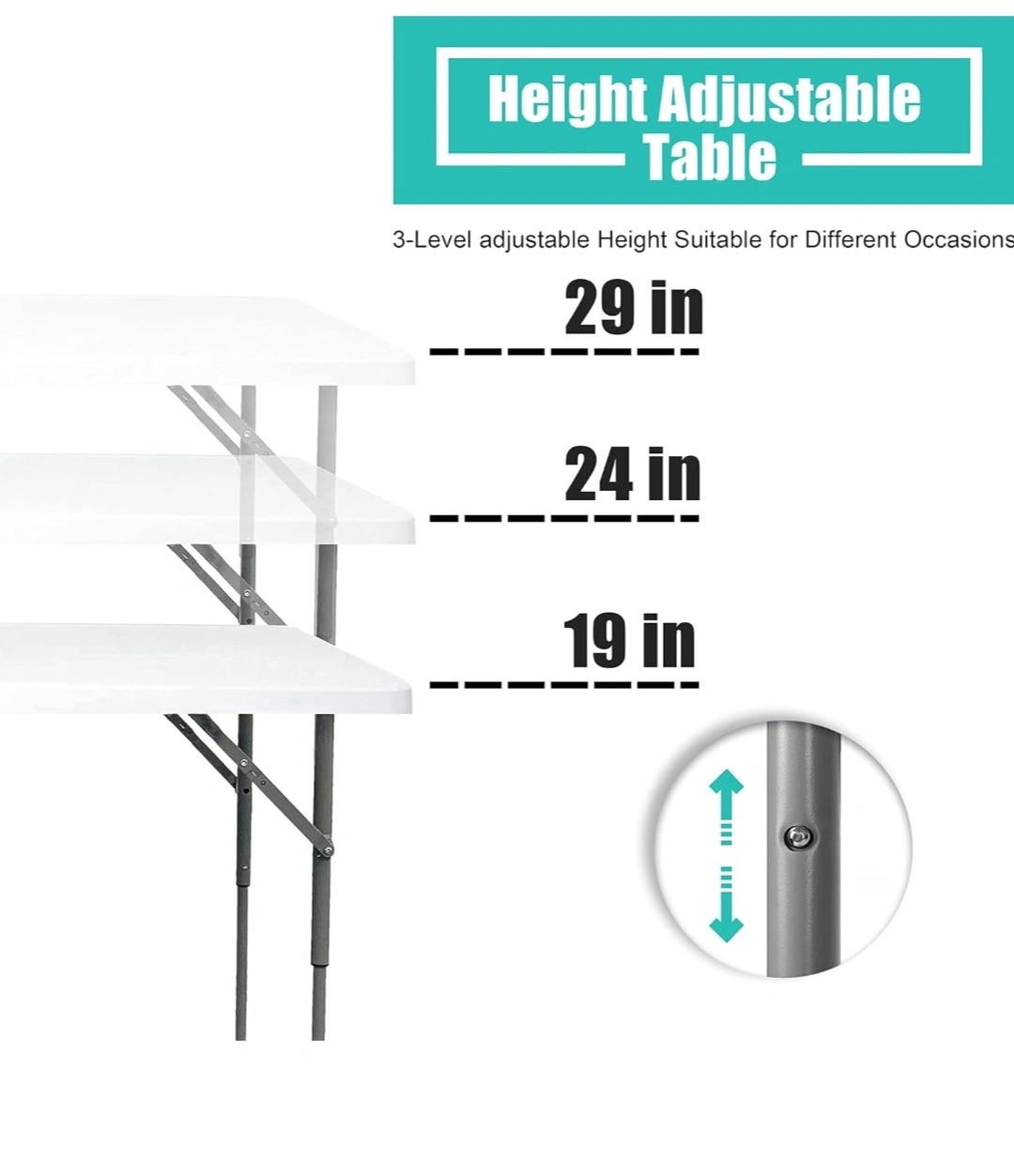 Go-Trio 4' Foldable Table w/Handle & Adjustable Height