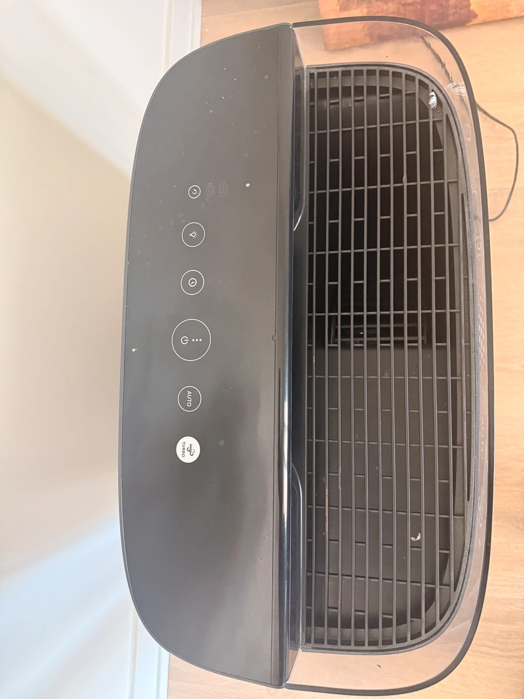Honeywell air purifier with multiple settings including Auto and Turbo modes. It features a sleek black design and an easy-to-read digital display. This unit is designed to improve indoor air quality.