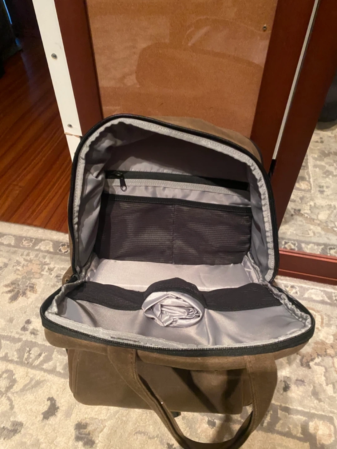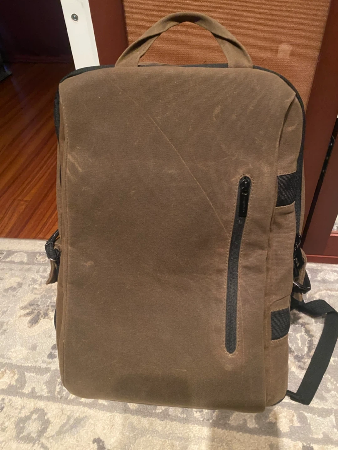 - Water-repellent construction made from tightly woven, waxed canvas.