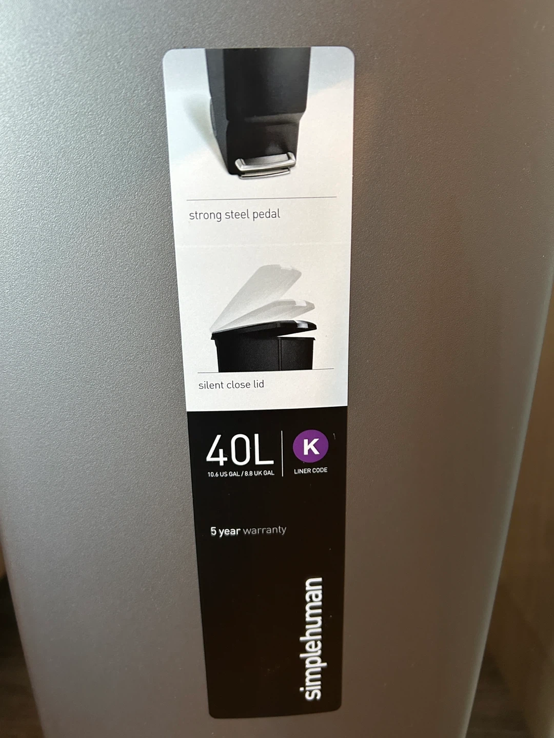 This new Simplehuman trash can has a 40L capacity and a strong steel pedal for hands-free operation. It also features a silent close lid, preventing loud slamming. The bin includes a pet-proof lock to keep curious animals out.