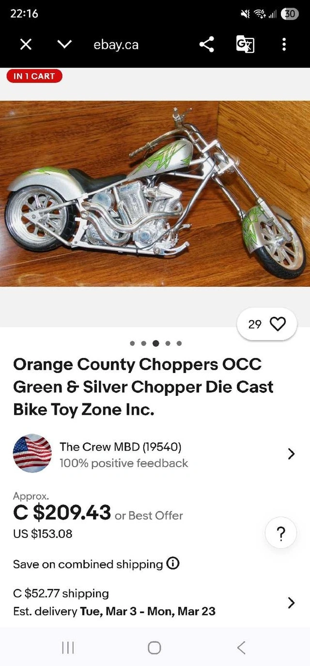 Is in mint condition and comes complete with its original packaging. It's a detailed scale die-cast replica, perfect for collectors or fans of the iconic motorcycle builders.