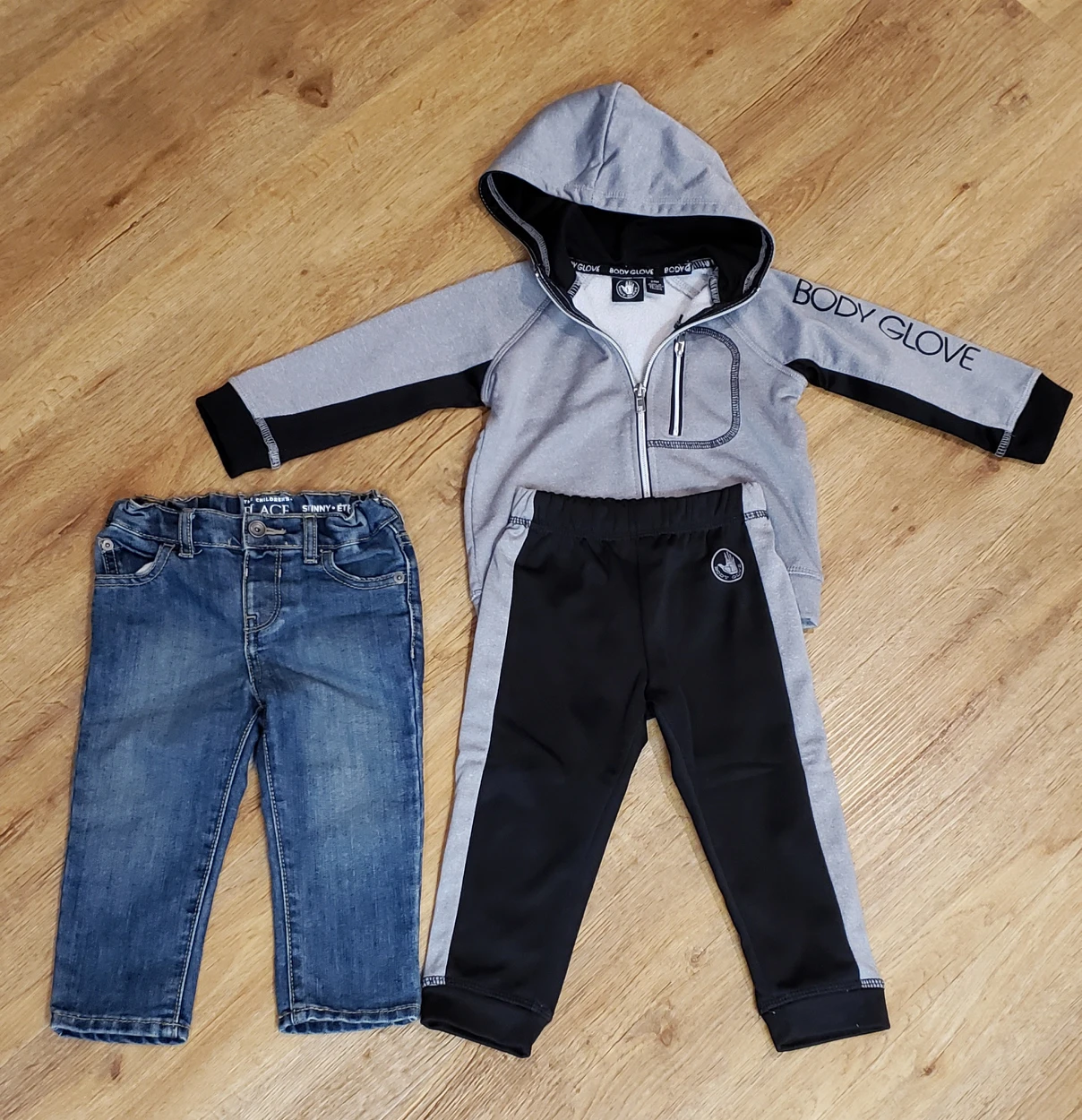 Children's place jeans 18-24 months brand new. Body Glove suit 24 months gently used. Everything for $15.00. Porch pick up. Pet-free and smoke-free home.