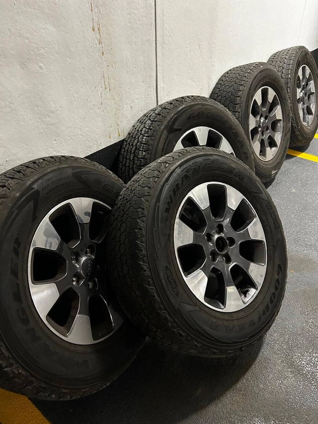 10255 70 R18 Wrangler Original OEM Rims with Tires. 5X5 bolt pattern. Rims condition: Mint, no scratches, no damage. Tires condition: fair, can be used few more seasons. Selling grill for jeep grand cherokee 2005-2010 too