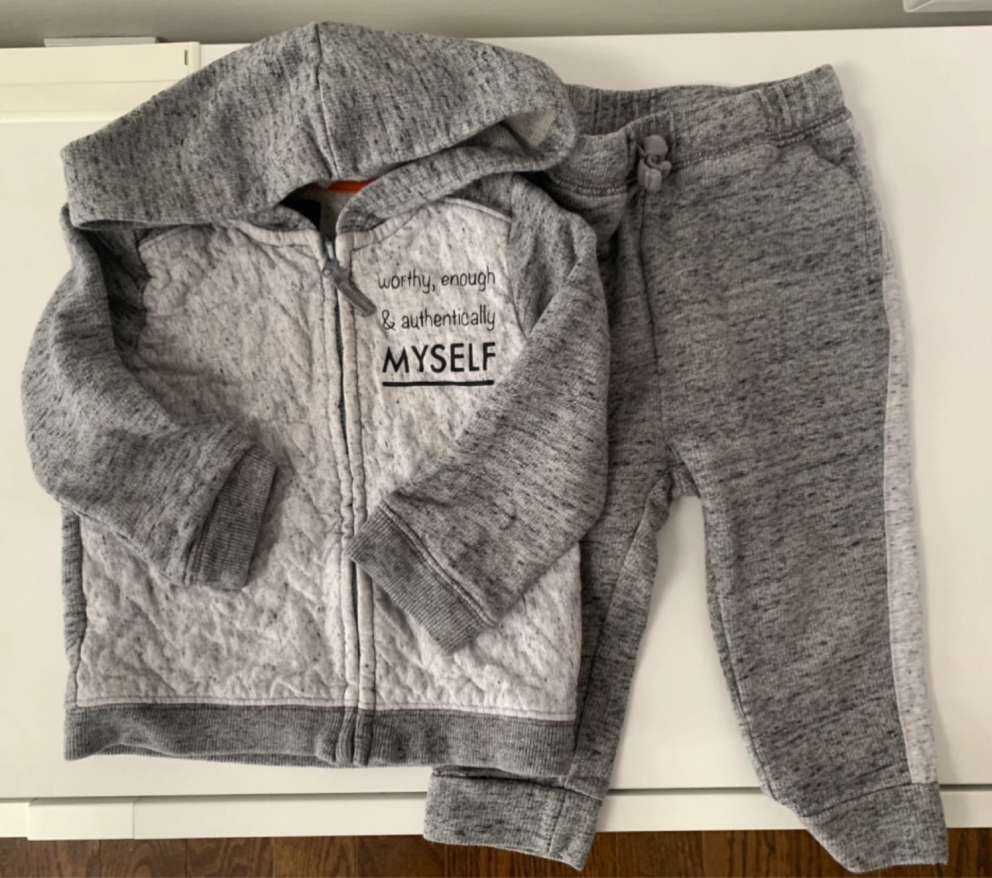 18 months. Excellent condition. Positive affirmation hoodie and matching sweatpants. Brand - Baby B’gosh.
