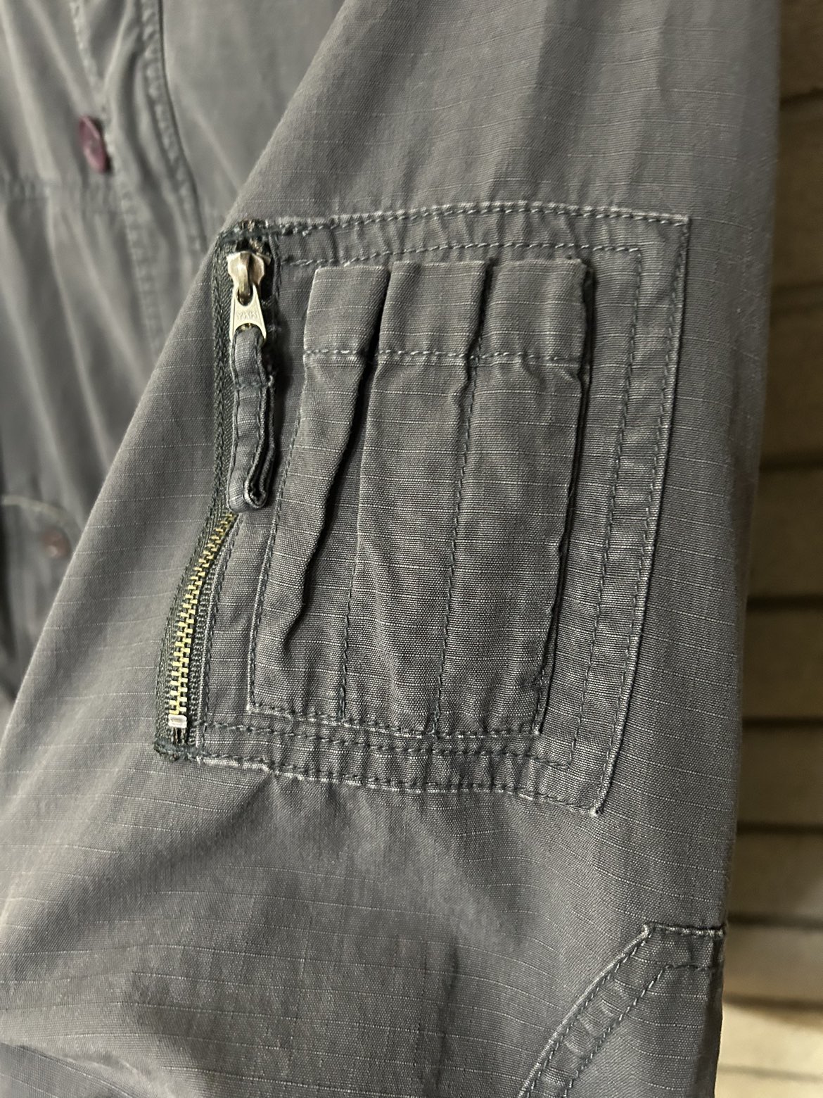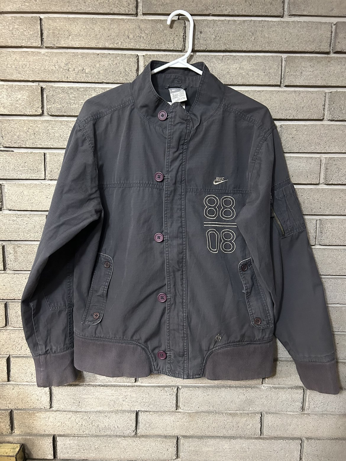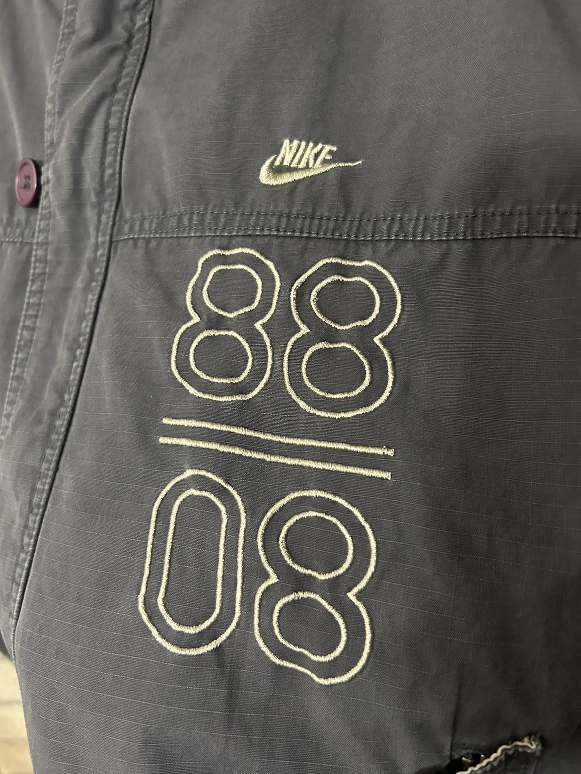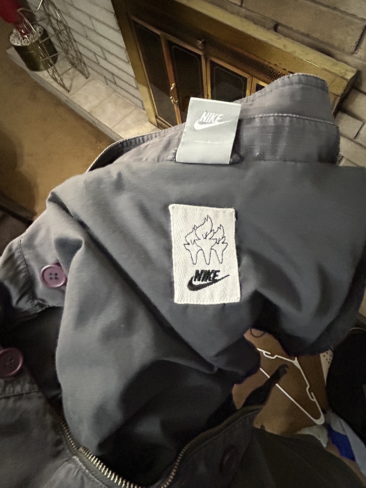 This is another one I hate to let go. This is the only item I am listing that I actually bought of Karrot myself. I saw it appear and knew it was more special than others realized. I cannot find any record of this item anywhere online. It’s definitely from the 2008 Olympic collection as you can tell from the branding and is also a noticeable cut above typical Nike gear in quality. It’s easy to tell that the distressed style is by design, as all the stitching and features of the jacket are pristine. I am only letting this go because I have to downsize and as much as I wish it did, it doesn’t fit me. Can you find it online? Might be worth a lot more than $50. *not pictured is a button-on detachable hood which matches the beige colour along the zipper and the ventilation slit on the back. I have do have it and can send pics on request.