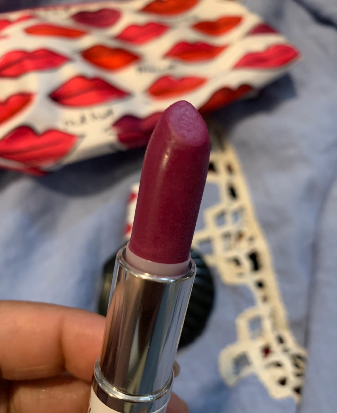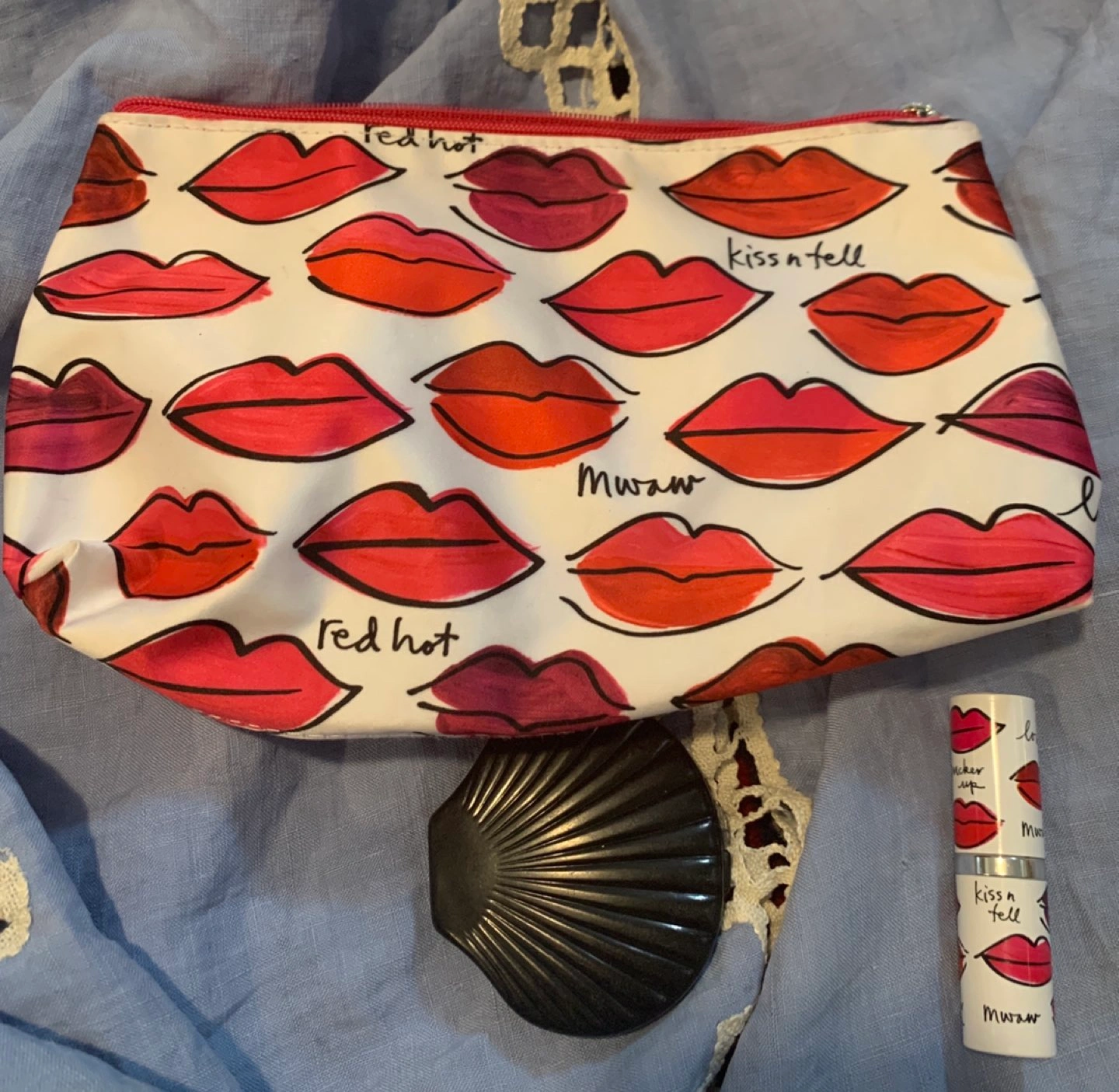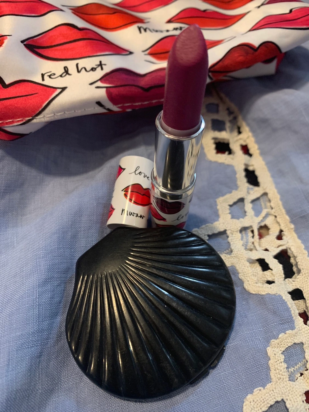 Comes with one mate plum Clinique lipstick 馃拕 (( used twice),comes with one Clinique make up bag and one black pocket mirror in the shape of a shell.