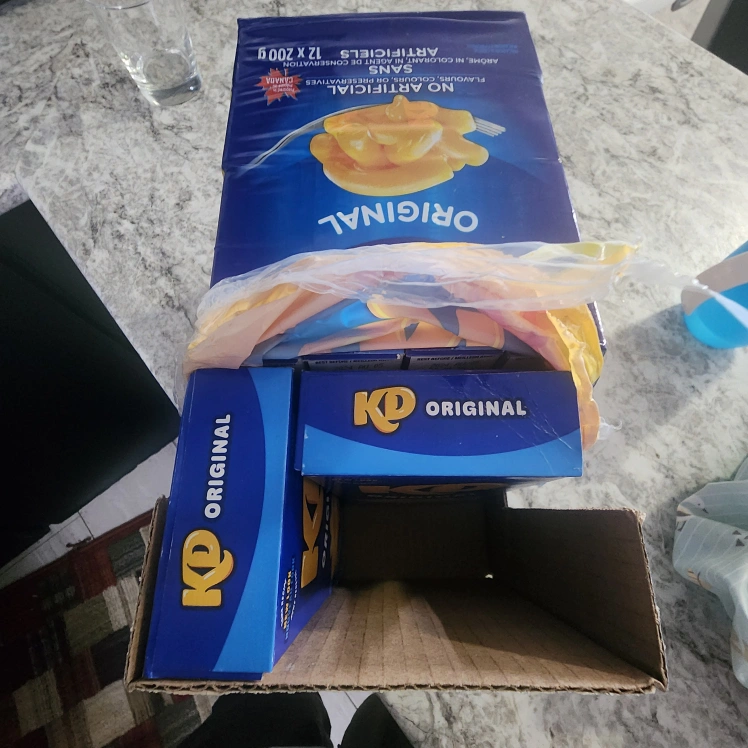 I bought this item about a couple of weeks ago and thought that it would still taste great like it did when I was younger. it doesn't taste like mac n cheese anymore... I think I grew out of it. 10/12 in the box