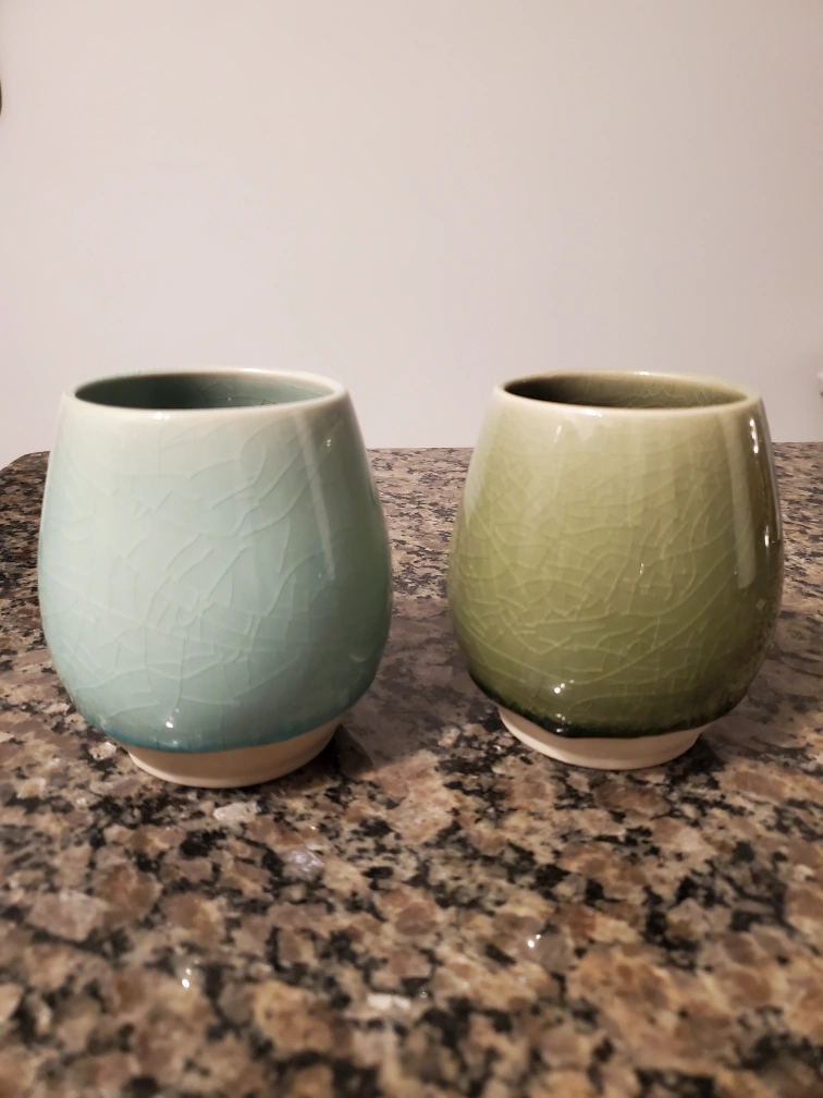 beautiful handmade ceramic mugs from Thailand with unique crackle glaze. originally bought at Starbucks for $25 per mug. pickup only