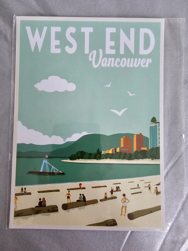 Art print of the West End Vancouver, still in plastic wrap.