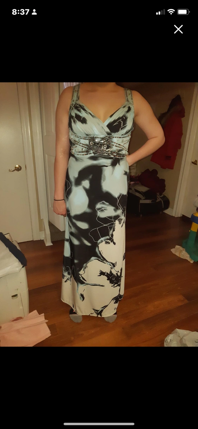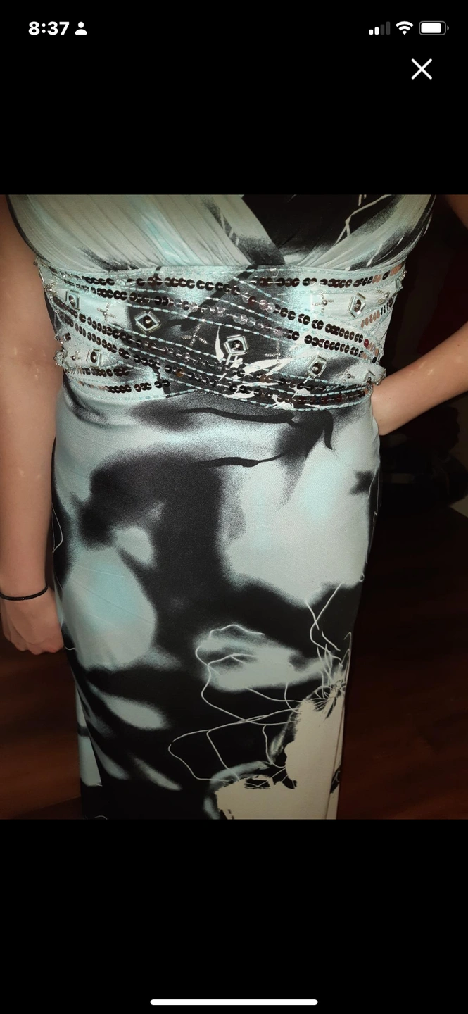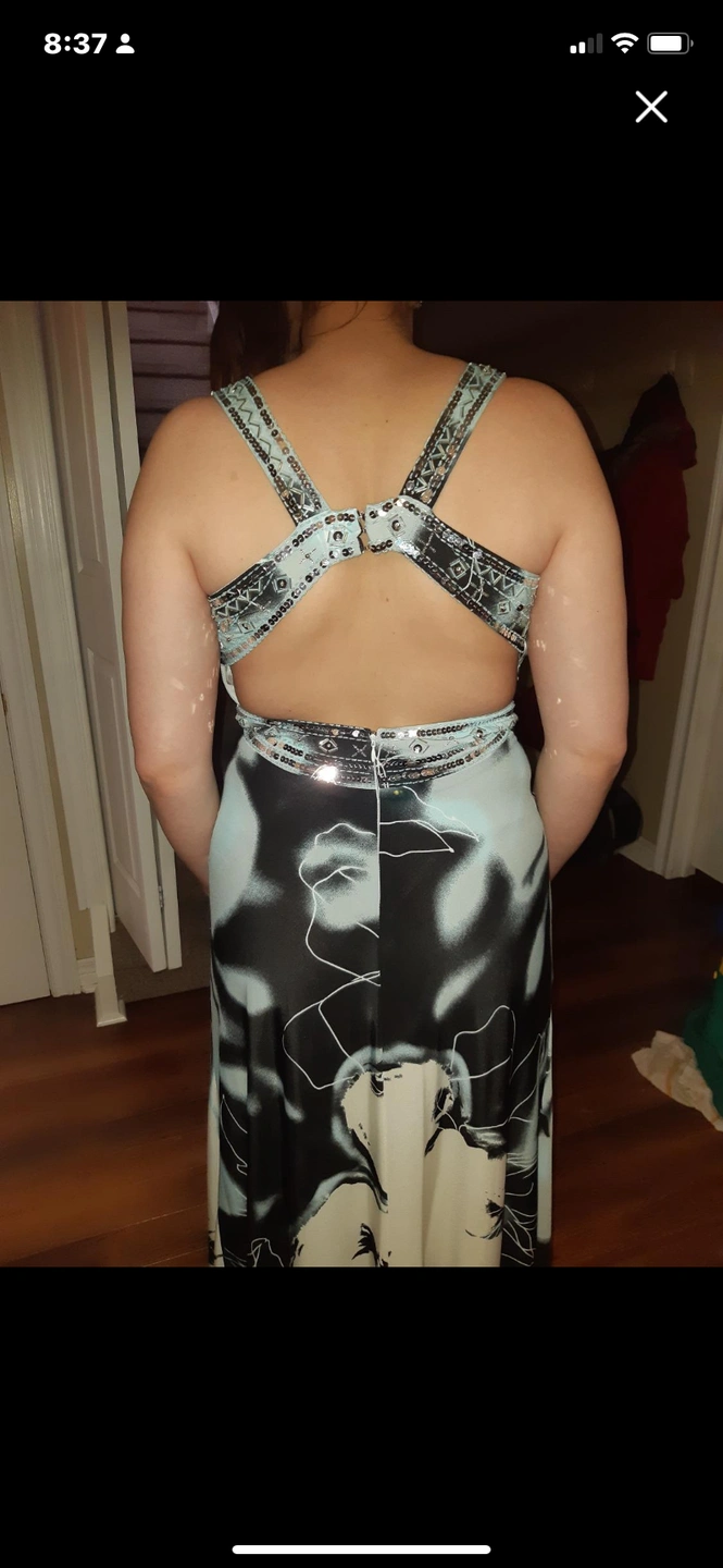Beautiful Laura’s dress full length open back, straps and waist are embellished in sequence no rips no tears dress is in mint condition. Size 8. Paid over $315.00 selling for $45.00