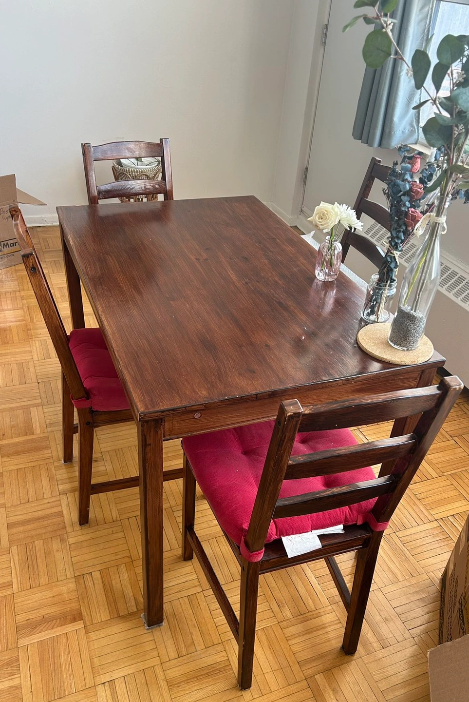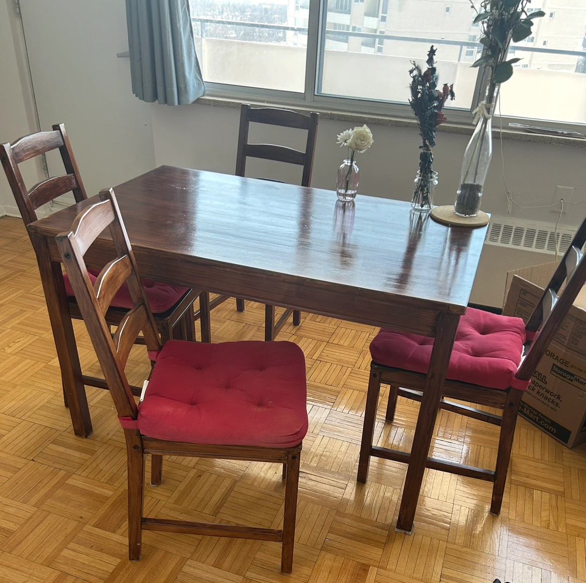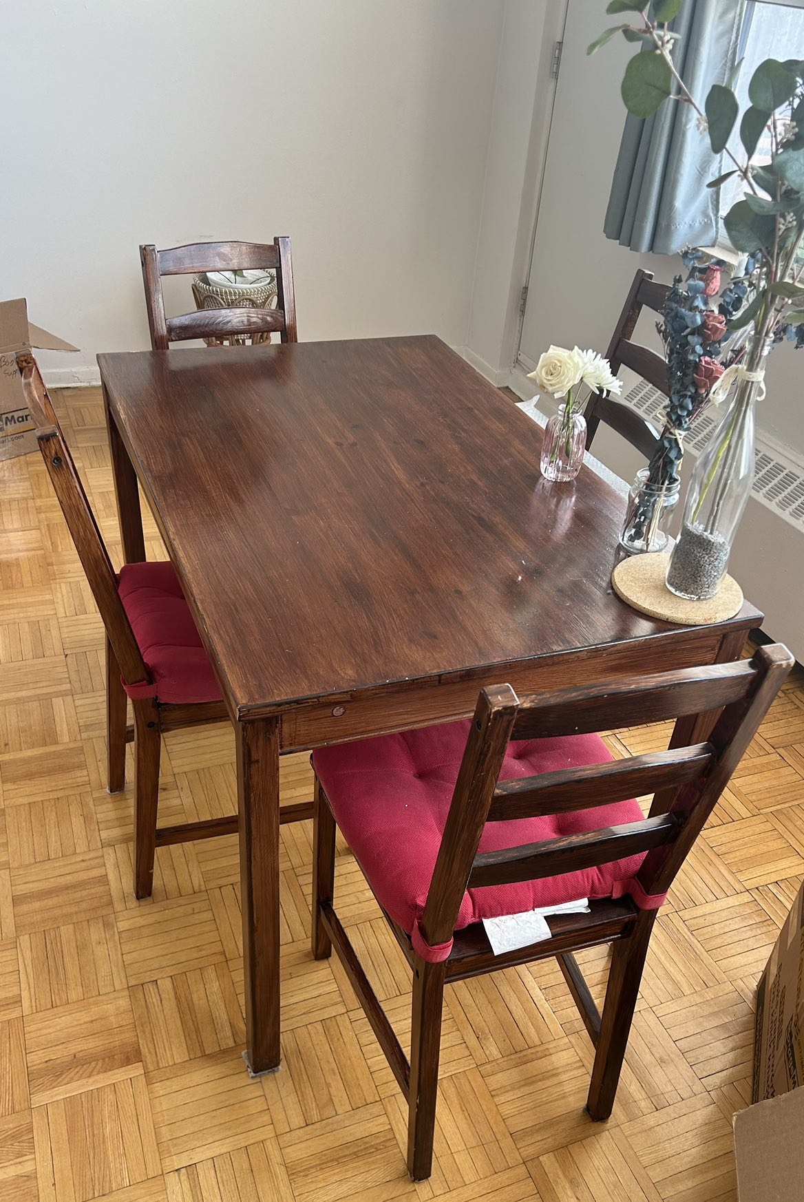 Dining table and 4 chairs with cushions (Ikea Jokkmokk)