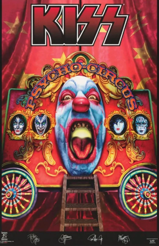 Vintage KISS Psycho Circus Poster from 1998, #9025. Poster is still sealed in original packaging, never opened or hung. The Poster is the one shown in pictures (found on internet). One side of poster was slightly squished, but poster not damaged (see pics).