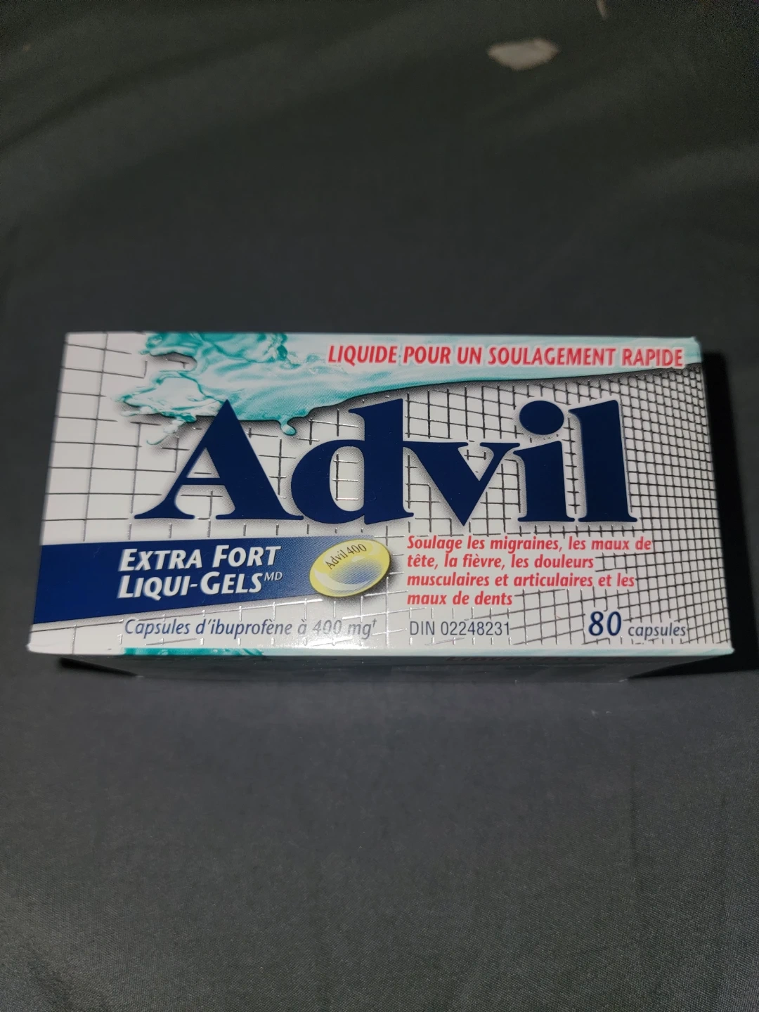 Advil Extra Fort Liqui-Gels MD. Ibuprofen capsules at 400 mg. This box contains 80 capsules for fast pain relief. It's liquid-filled for rapid absorption.