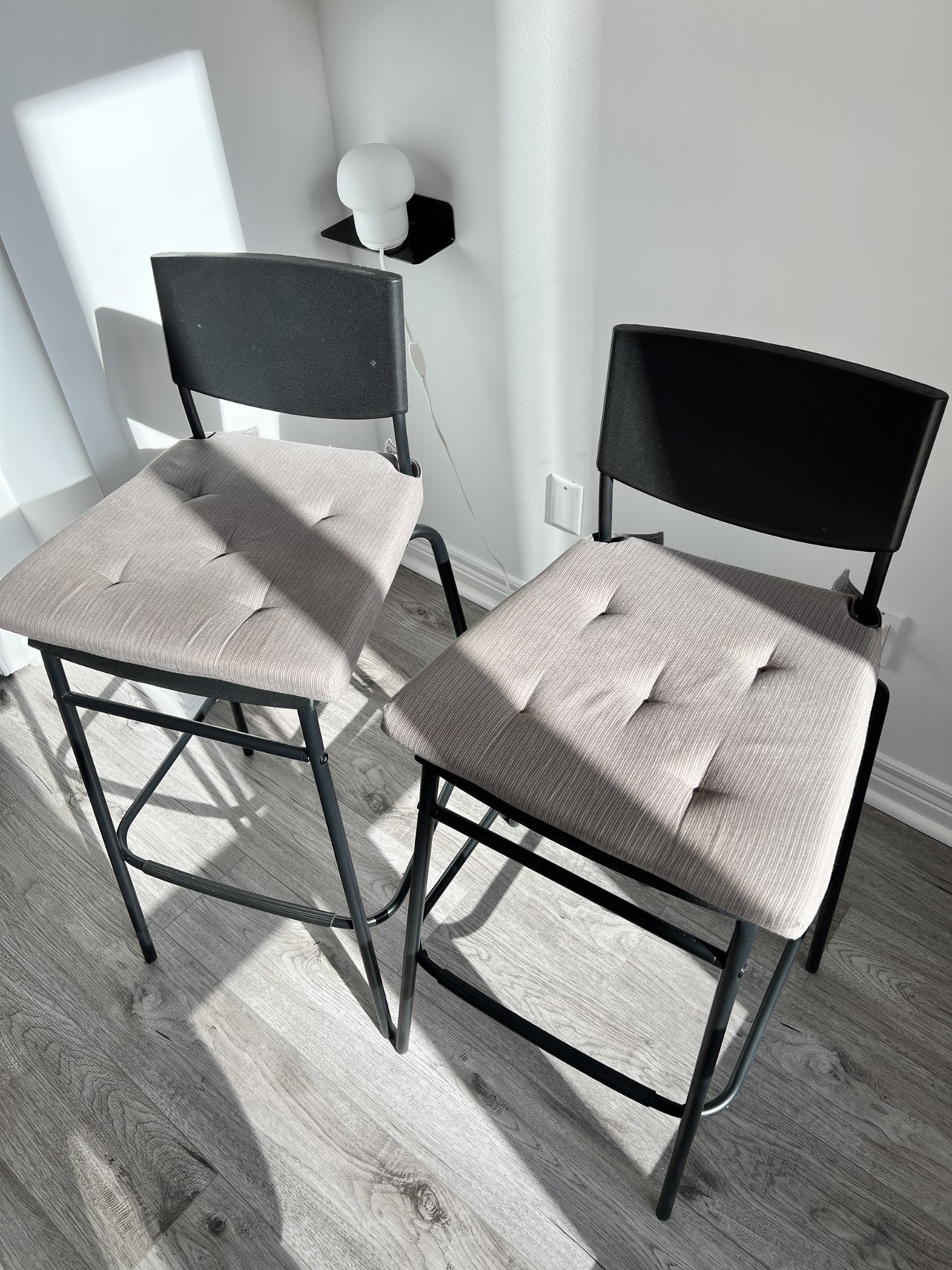 Ikea Stig Bar stool (×2) for sale. Like new, hardly used in a pet free, smoke free home. Stool height is 74cm. Available with Ikea Justina seat cushions. Comfortable bar sitting, can also be used for dining or with standing work desk. Originally purchased for $50 per chair.