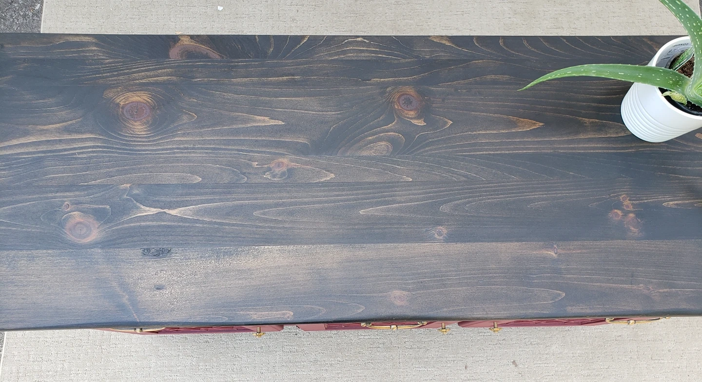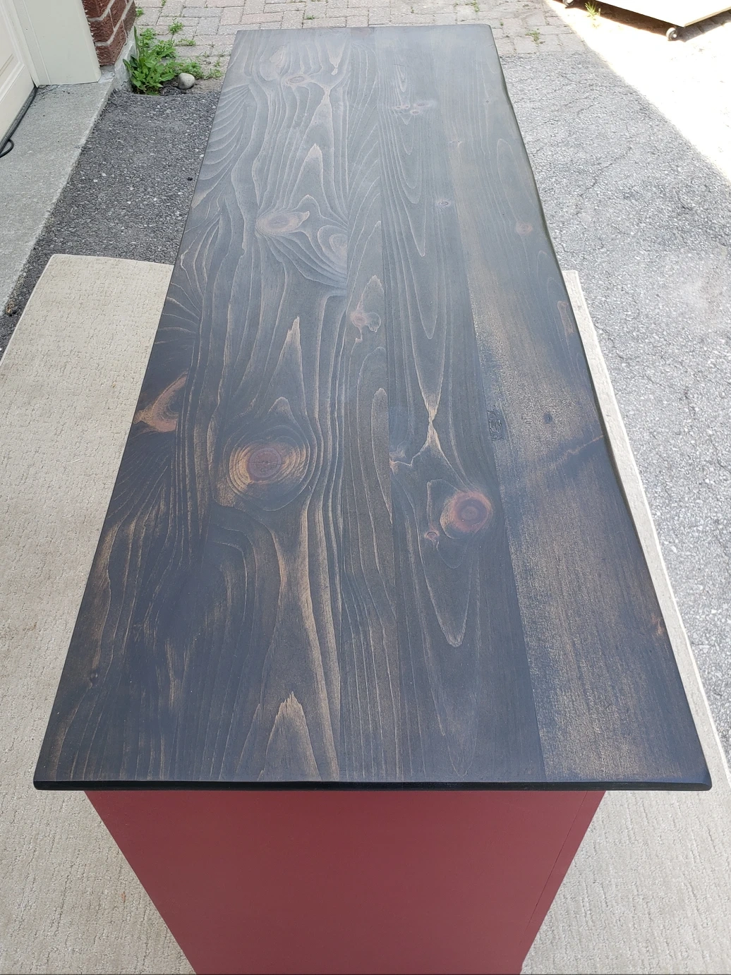 Paint colour is Fusion Cranberry and stain is Fusion Stain and Finishing Oil in Obony.
