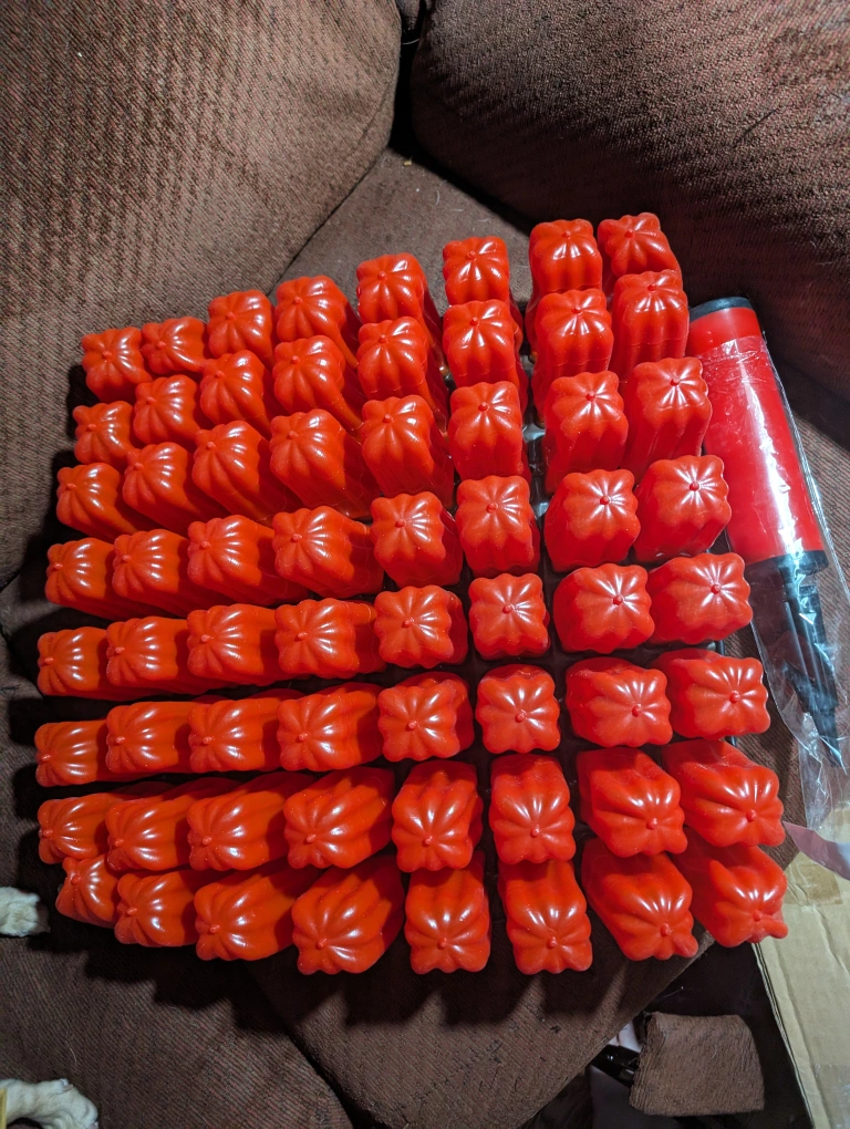 16 in. x 16 in with 64 individual 3 and 1/2-in tall Air filled pads. comes with pump. still in original box. never used