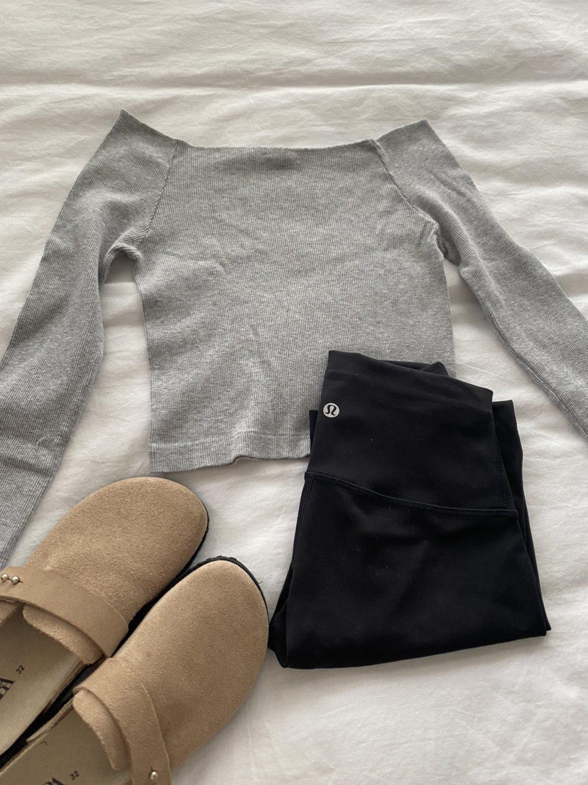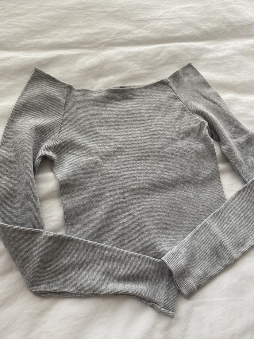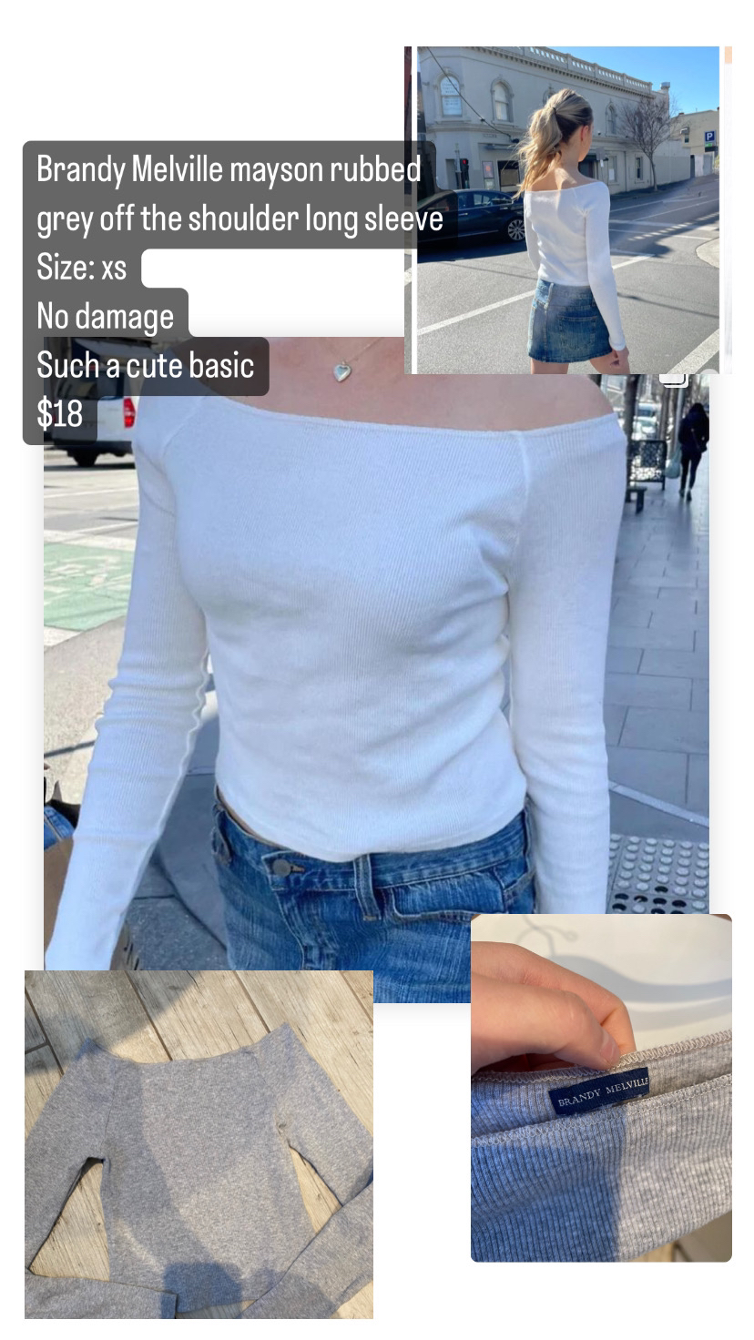 Brandy Melville mayson rubbed grey off the shoulder long sleeve Size: xs No damage Such a cute basic