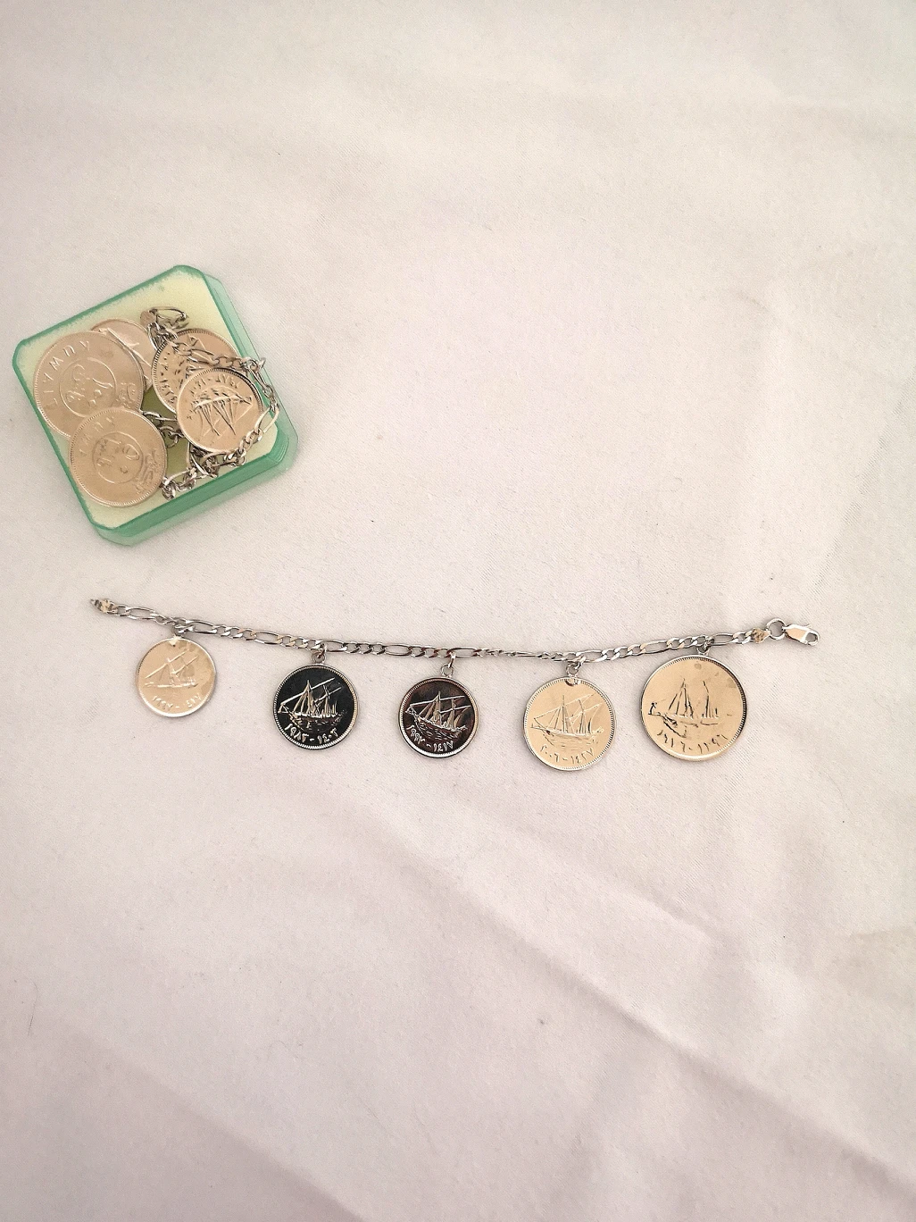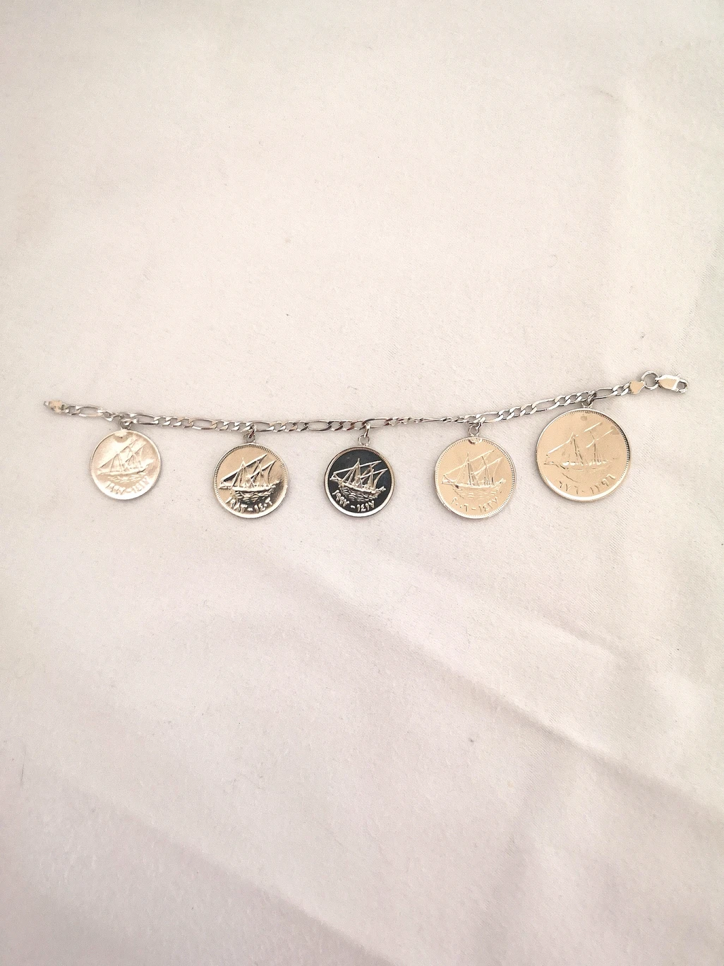 Although it looks like the Bluenose on the Canadian dime, it is not. The Dinar depicts a dhow ship, which represents its history as a ship building center in the Persian Gulf region.
