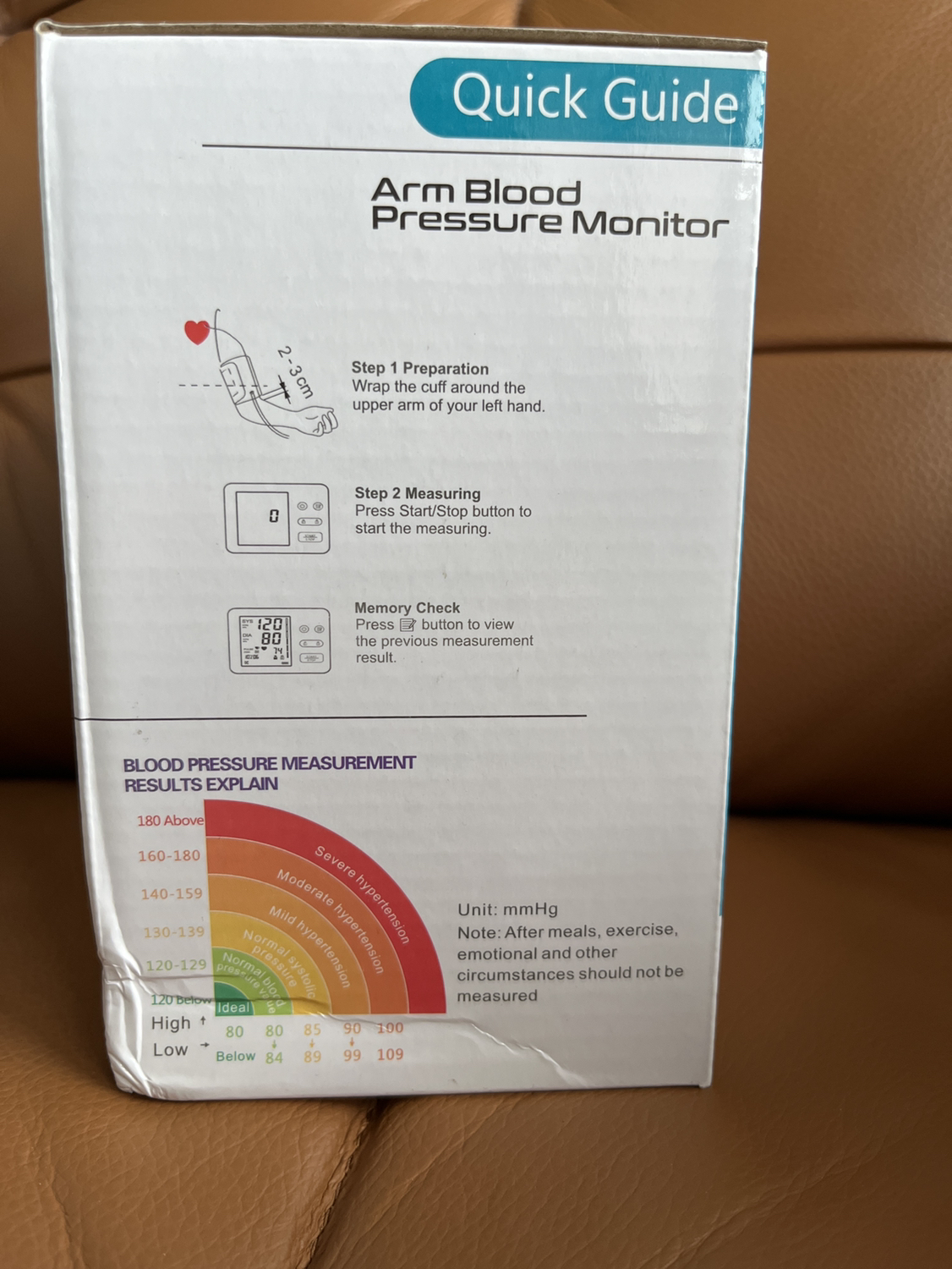 339At-home health check-up blood pressure monitor. Useful for patients with pressure/cholesterol issues, elderlies or those keeping check of their vitals. Selling because we have 2