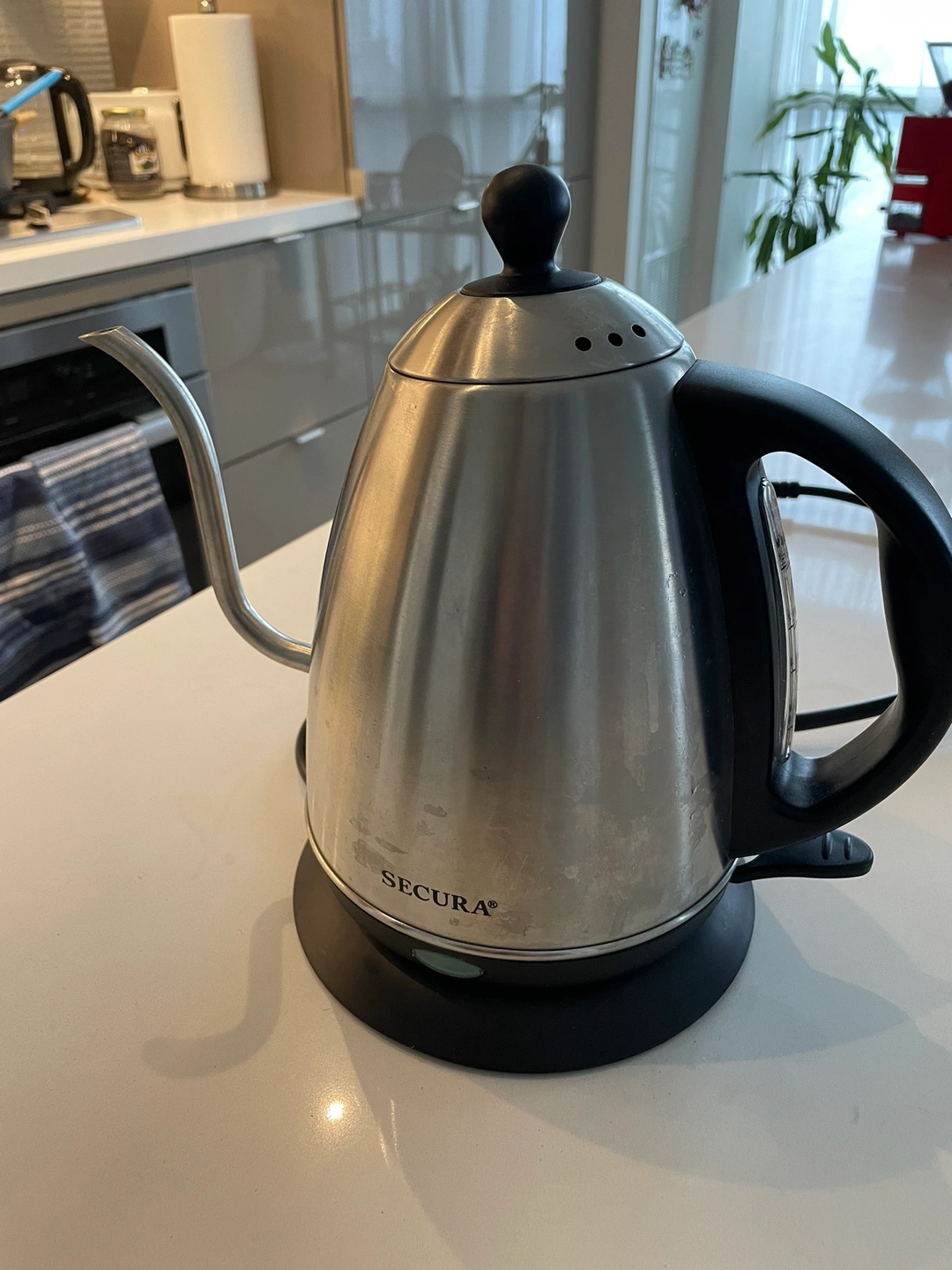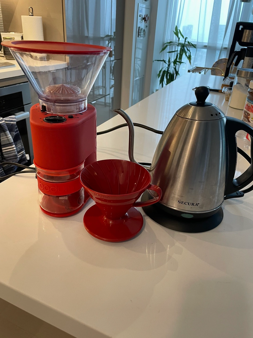 Comes with the grinder a free pour-over kettle and a pour-over coffee maker.