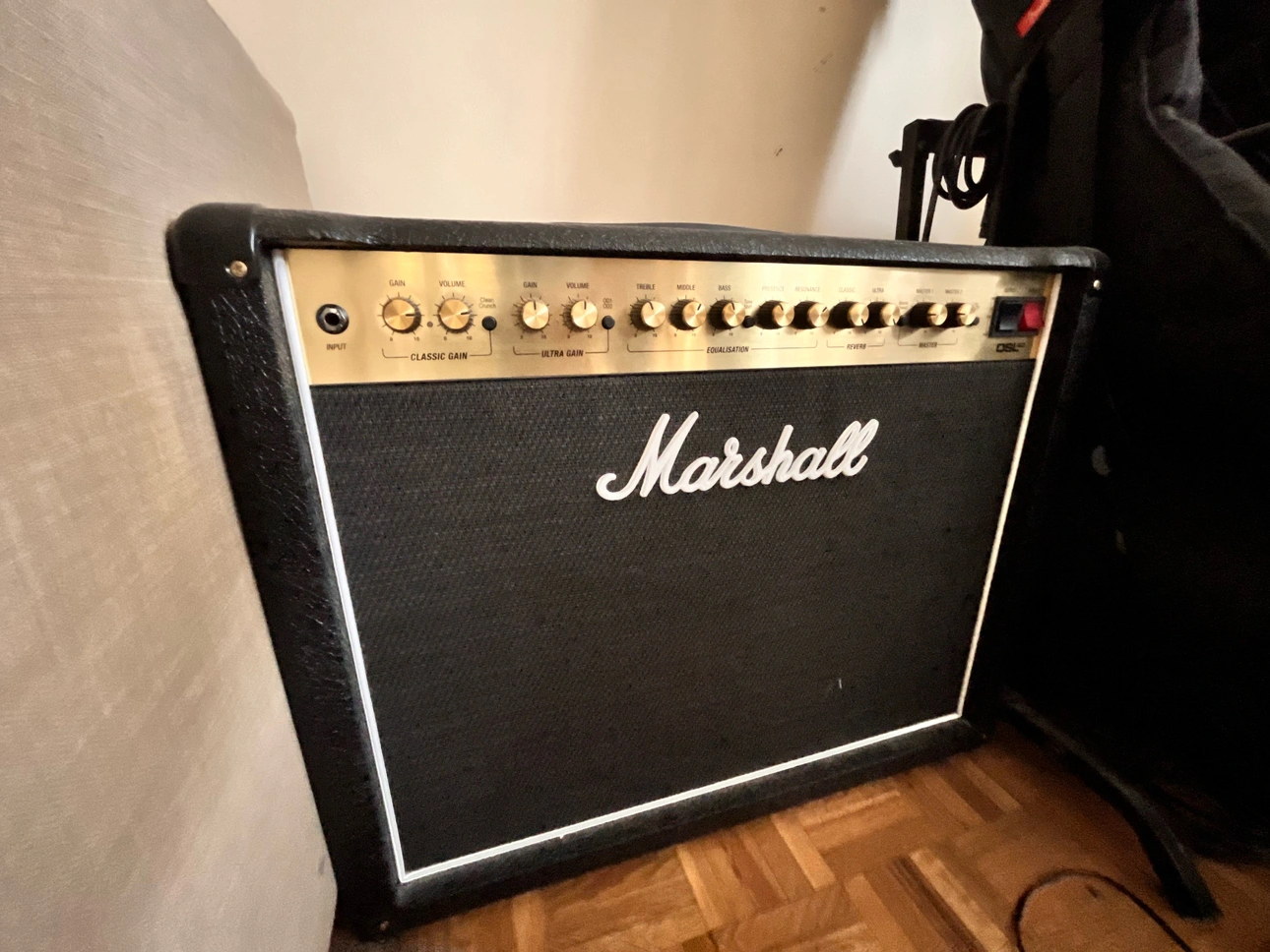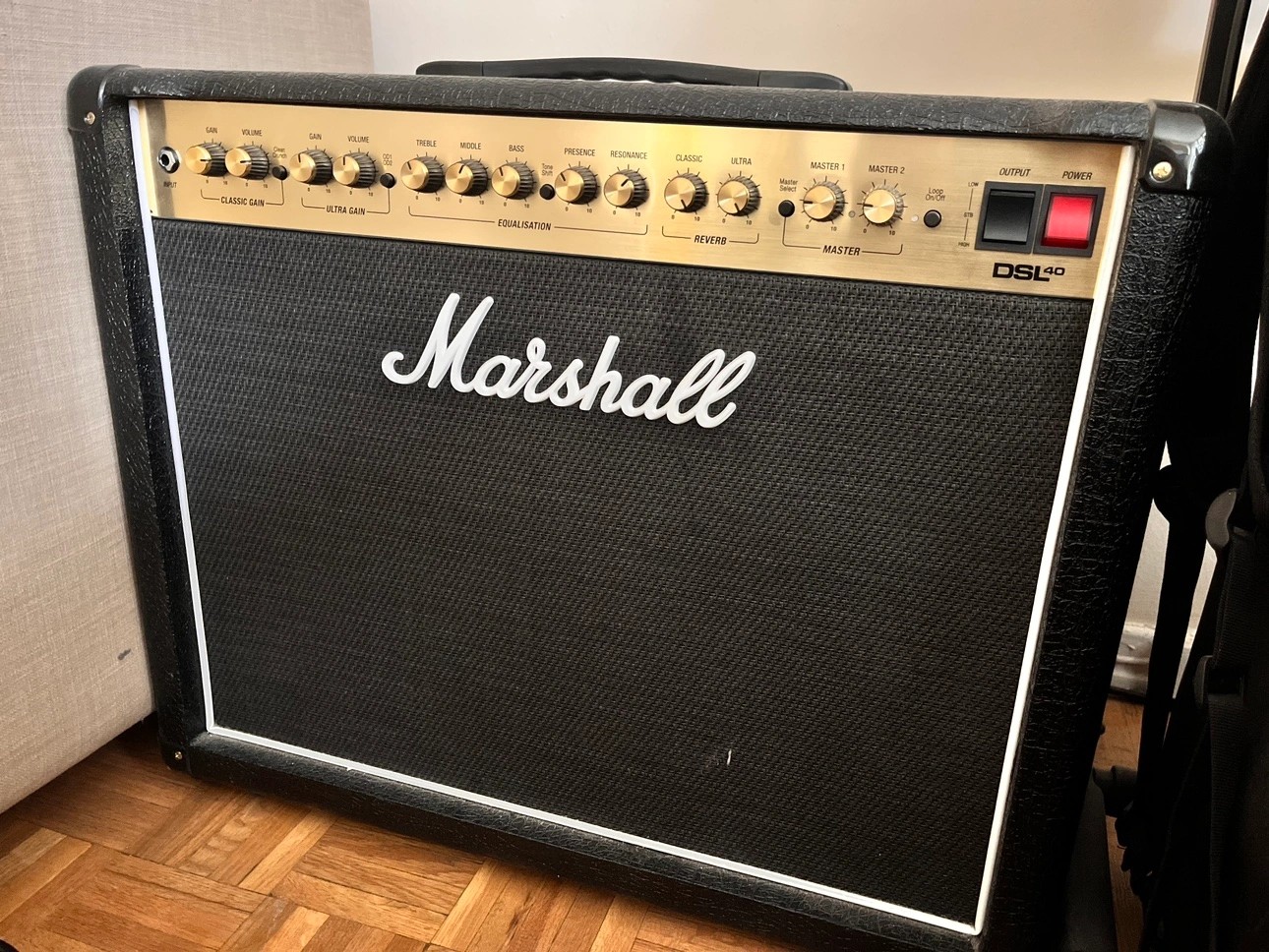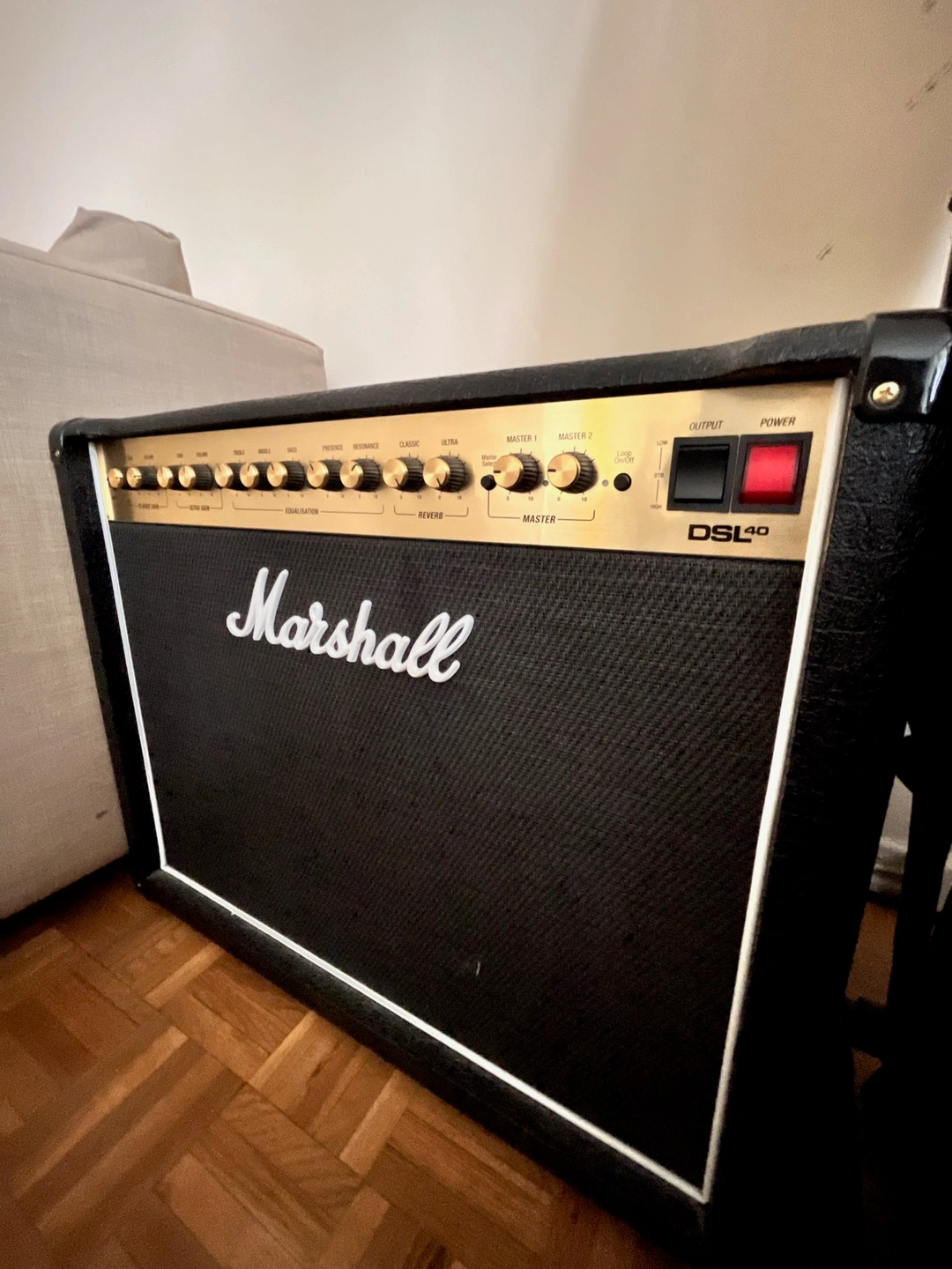 For sale is my used Mardhall DSL40 amp and included footswitch. This iconic tube amp is in pristine condition, demonstrating the impeccable build quality and design that Marshall’s known for. Providing a powerful 40W output and dual channels, it’s ideal for gigs and jamming at home. Use the footswitch to easily switch between clean tones to full throttle, and toggle reverb - all while maintaining that classic, beloved Marshall tone. A serious piece of guitar for any dedicated musician! Contact me now if interested!