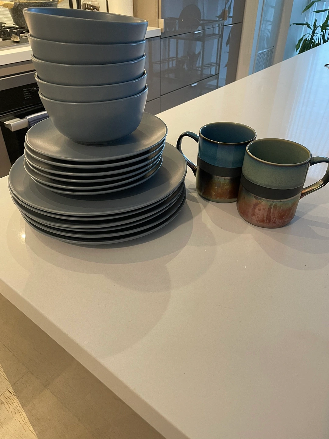 I am selling an IKEA dinnerwear set in great condition. The set only misses one bowl. One of the big plates has a small scratch. Please see the photos for any wear signs.