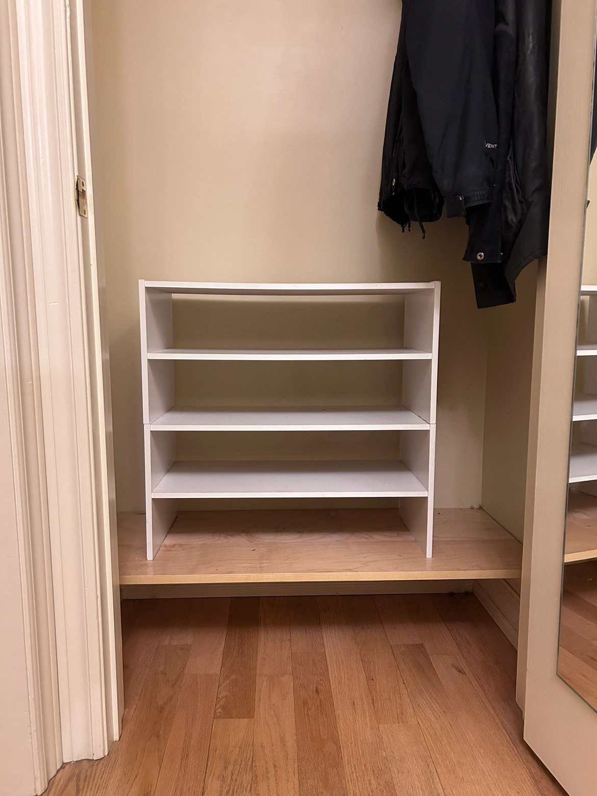White shelve / shoe rack. Comes apart and can be used as 2 x shelves of 2 if you prefer.