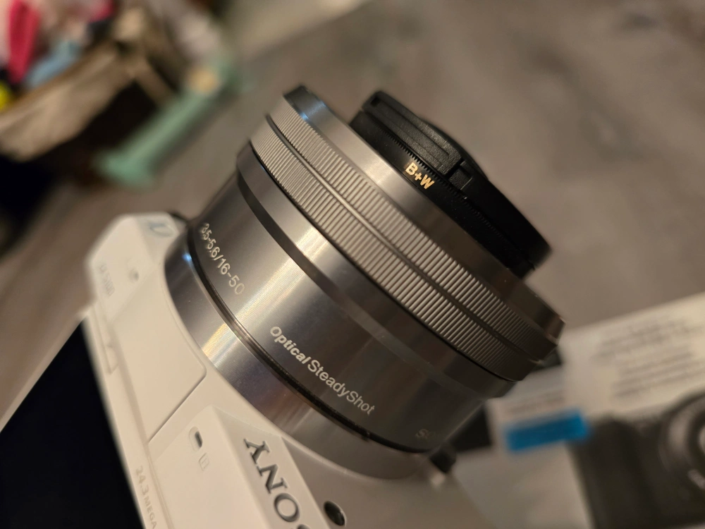 Comes with: Box, Manual, Body, 16-50mm Power Zoom Lens, (2) Batteries, Battery Charger, Dummy Battery, B+W 40.5mm UV Blocking Haze Protection Filter (010) for Camera Lens.