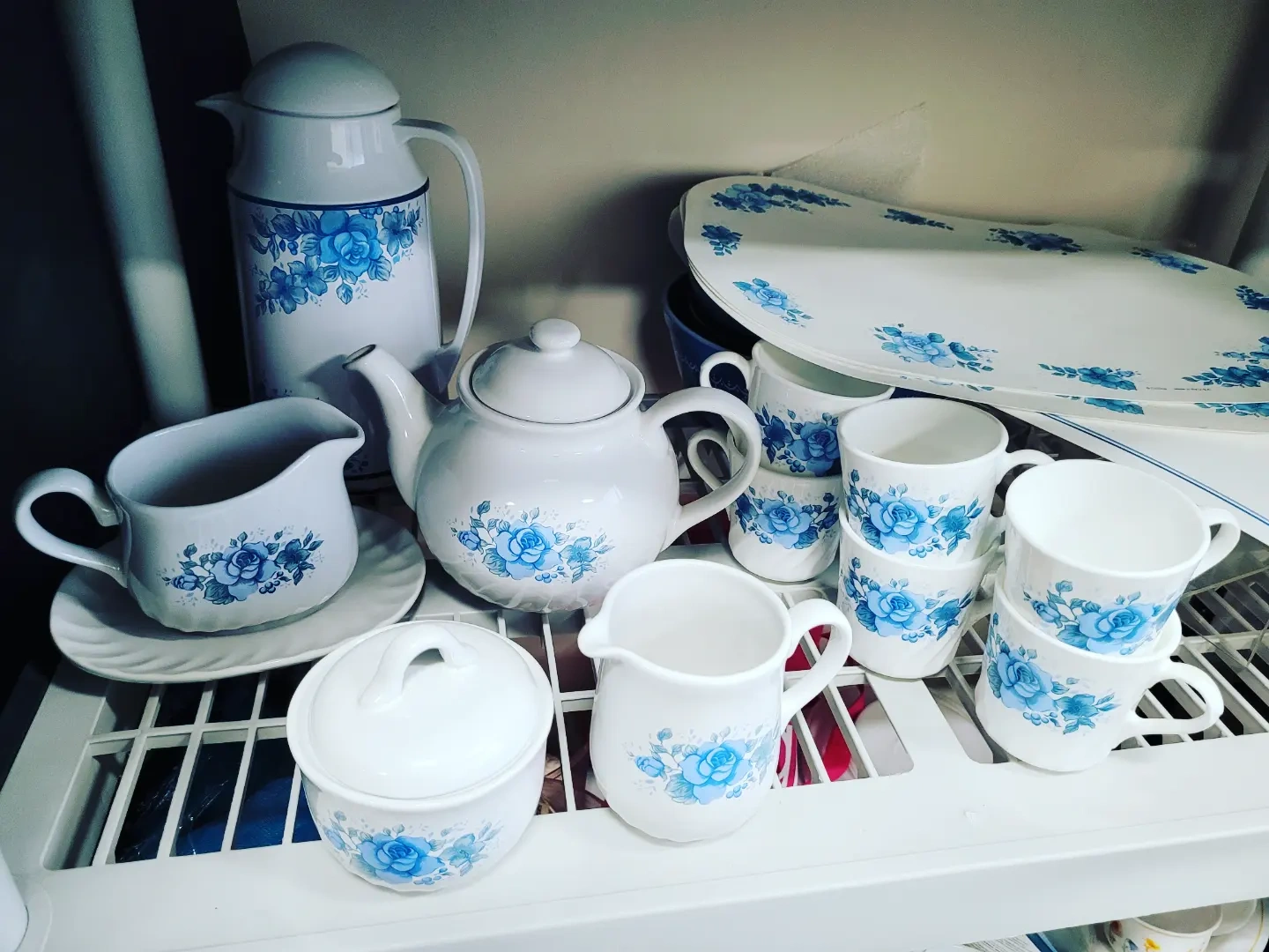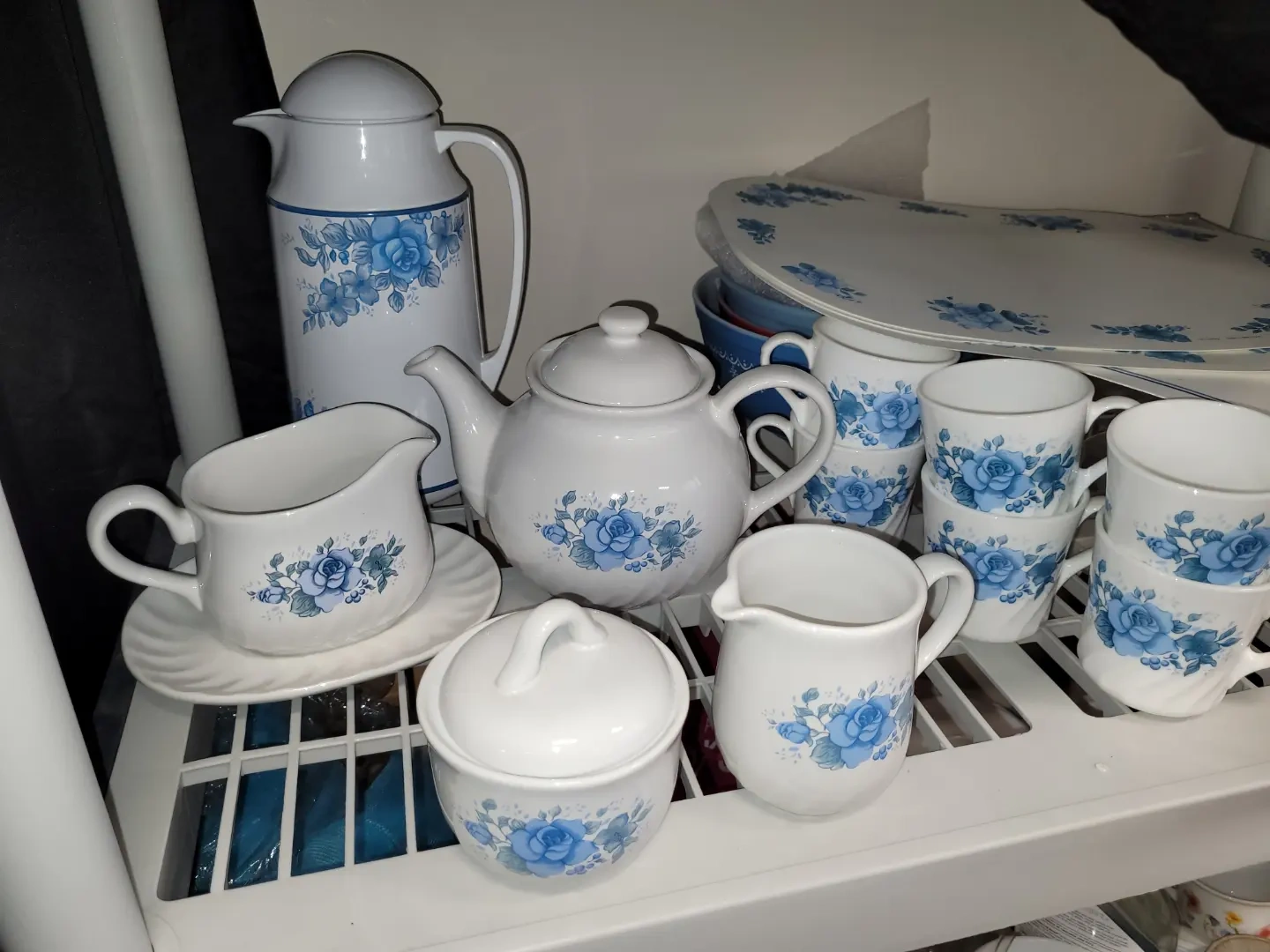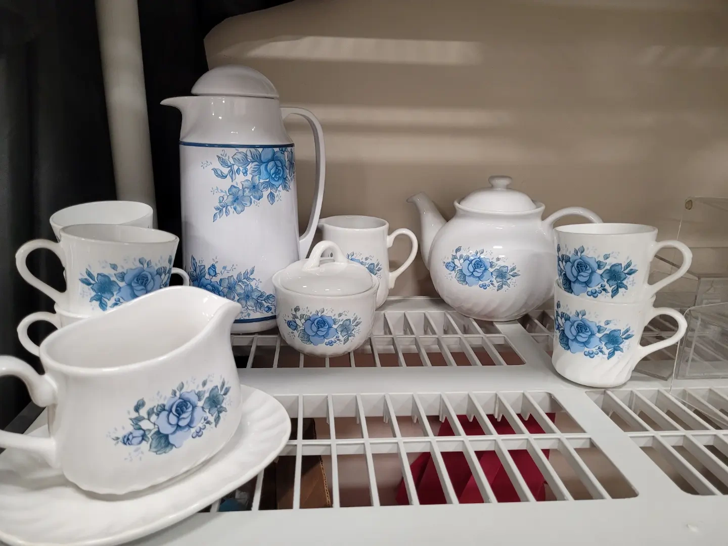 cream and sugar. 6 cups. with tea and coffee pot. 4 place mats and the gravey boat with under plate. its in storage i need to find it before you come. Must pickup. Please. no etransfer or long holds. this is a cash price. bring cash.