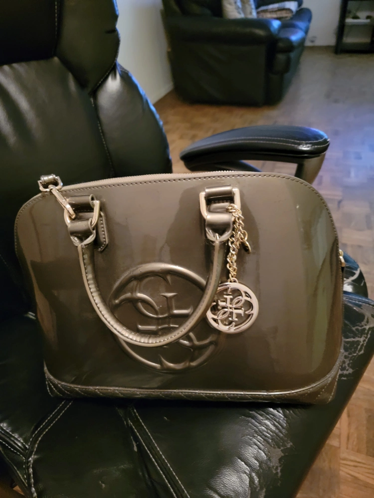 Shiny gold colour Guess Dome bag ready for the holiday celebration ahead many a gold hardware enhancements contribute to the wonderful look of elegance.
