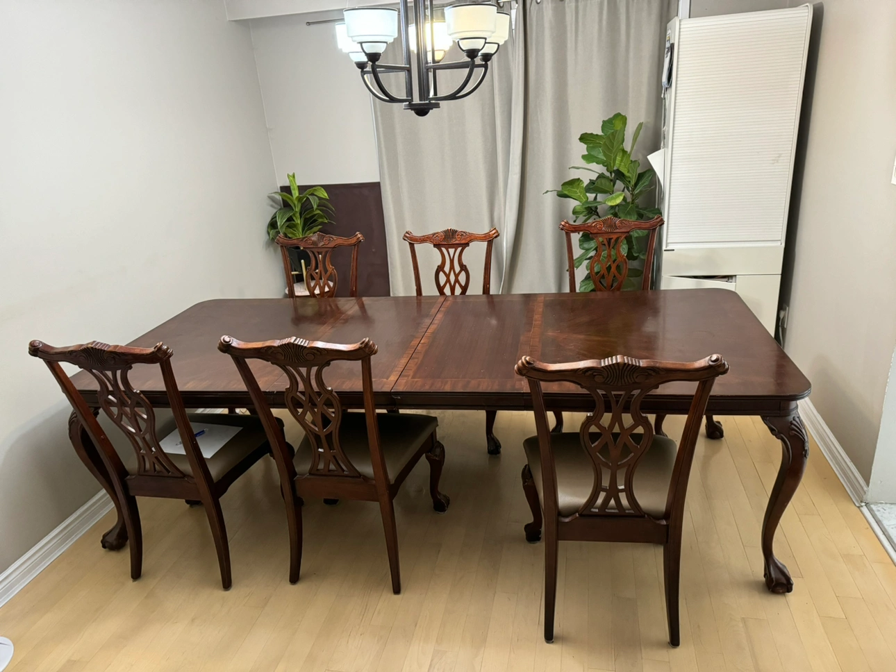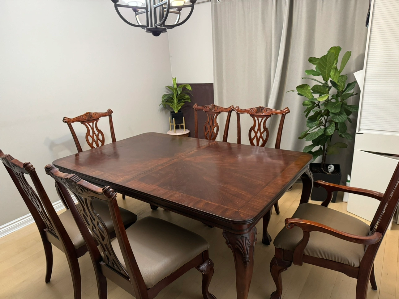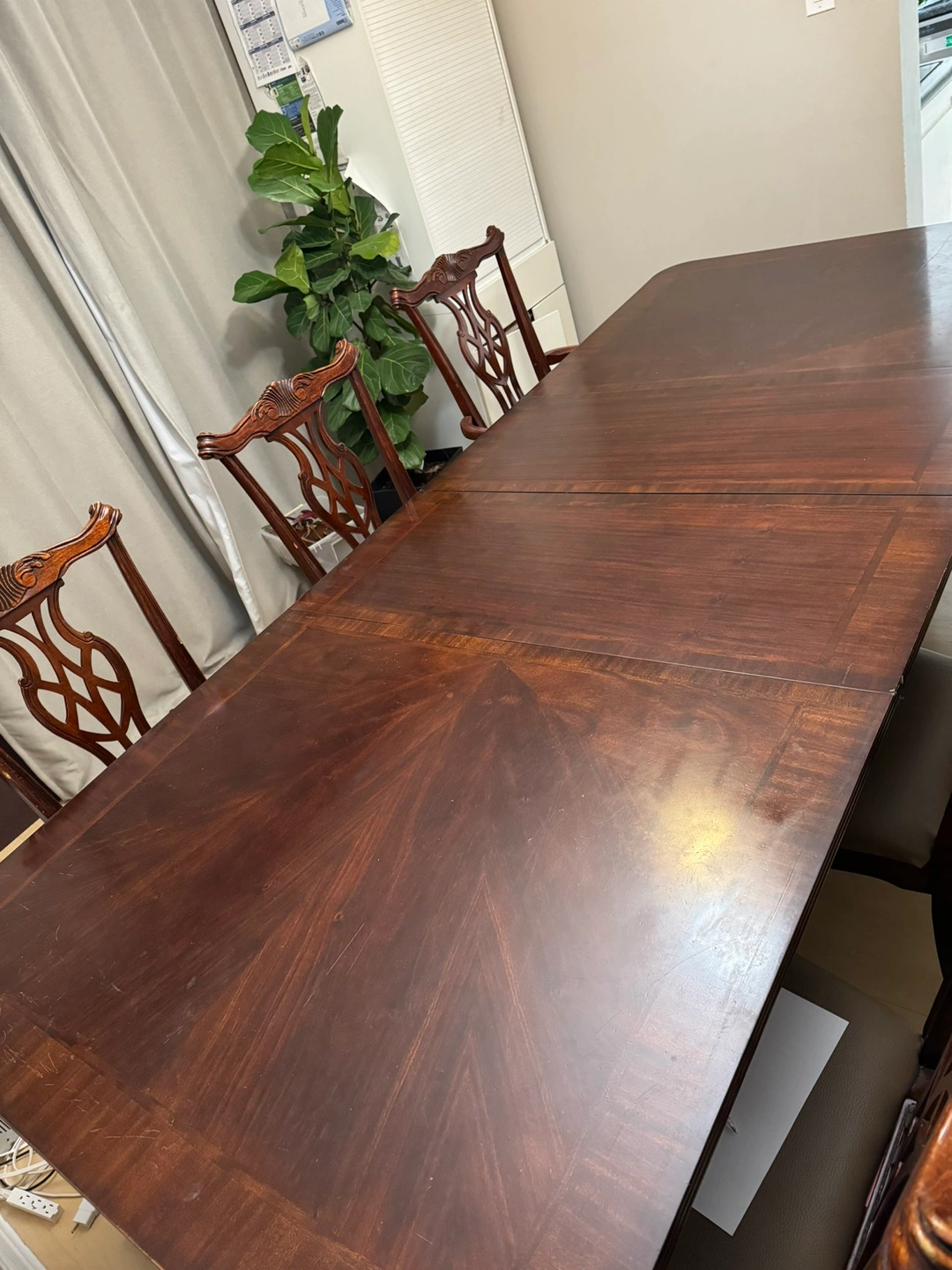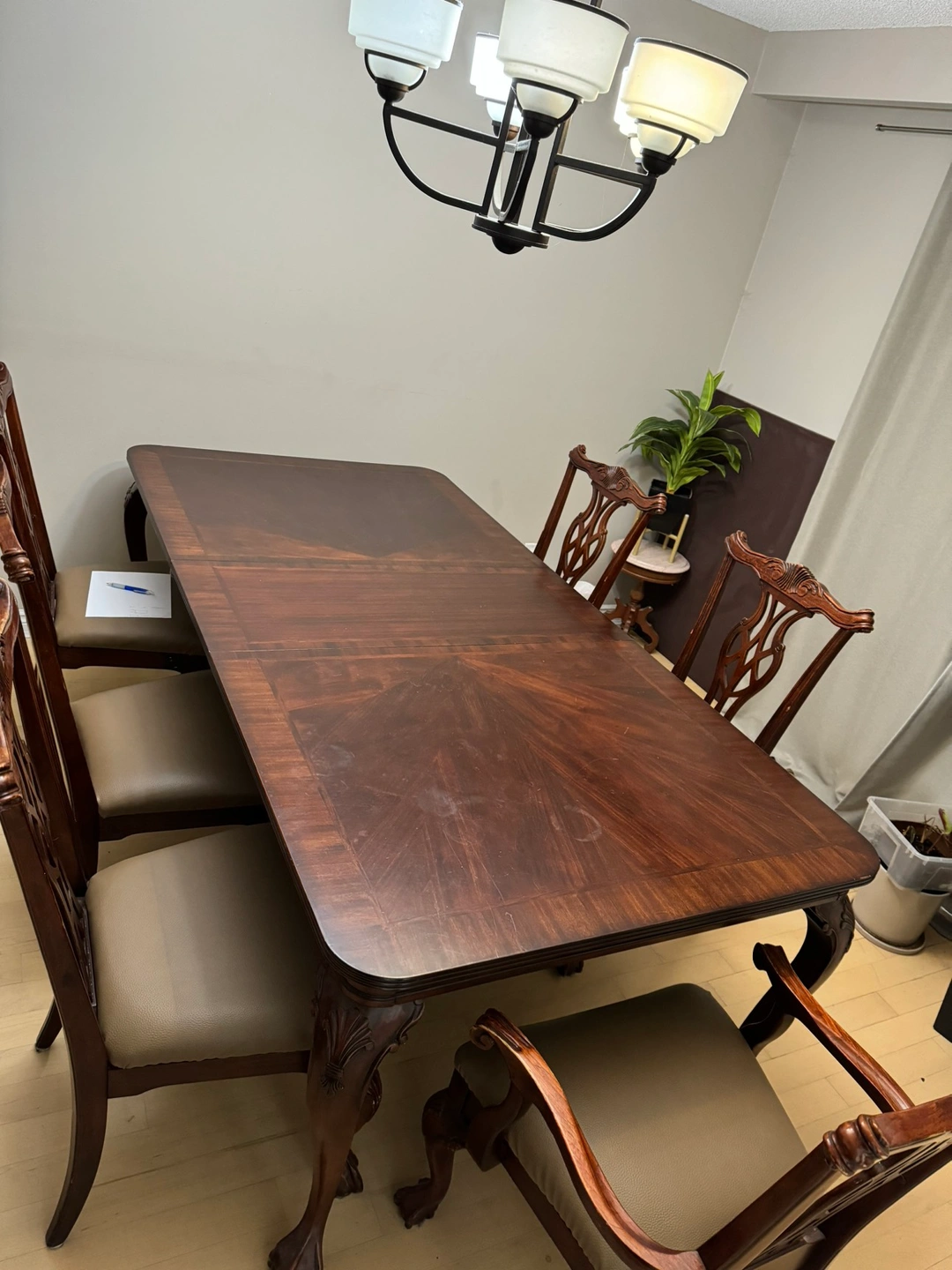 The table top would look better with some sanding and new coating, and if not, a table cloth would cover the imperfections.