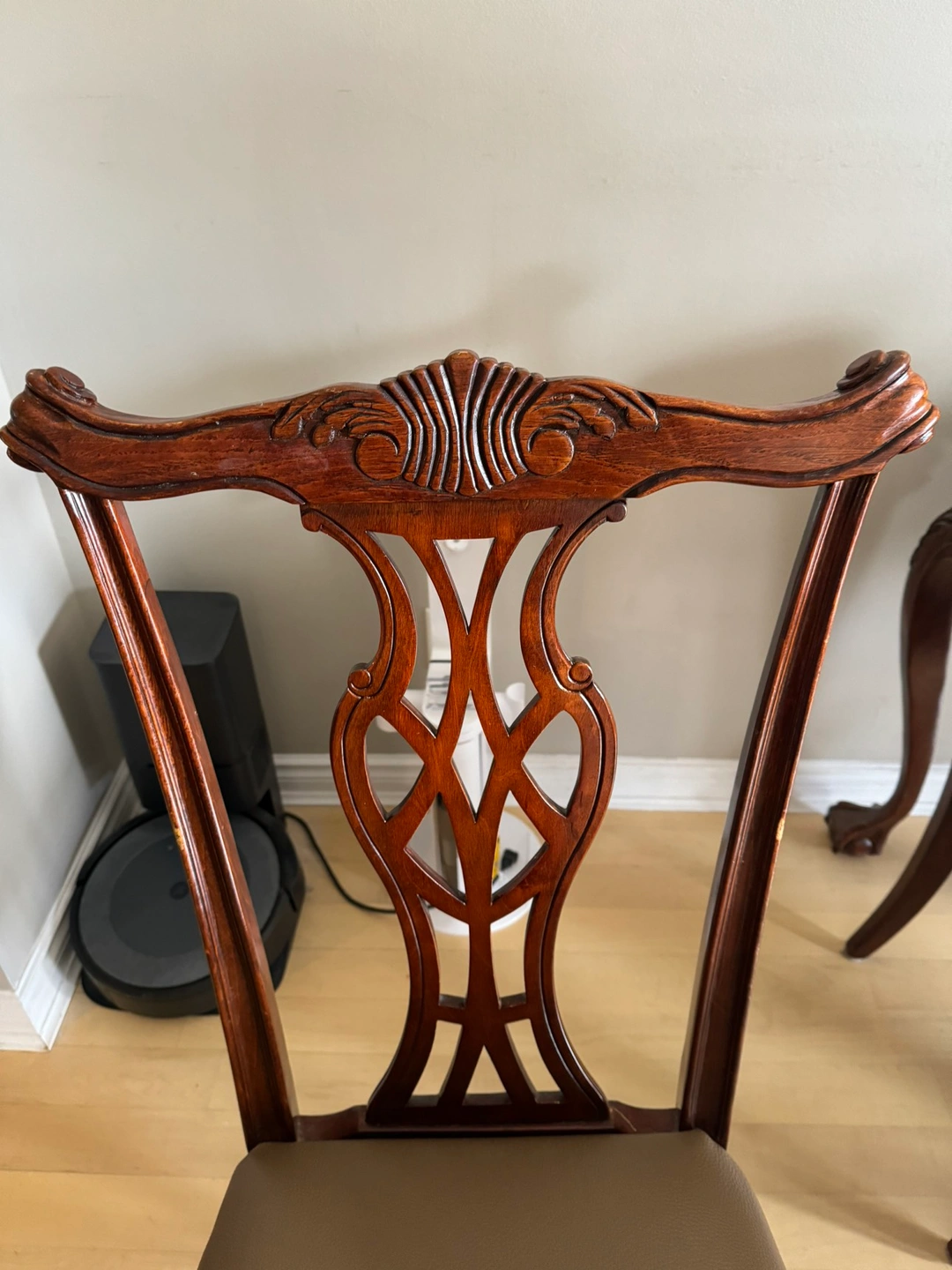 Four chairs come without the armrests and the other two come with the armrests, which are meant to go on the narrow sides of the table.