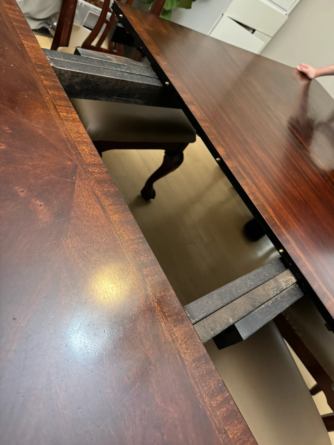 The insertion mechanisms are all done with wood sliders under the tabletop (pictured).