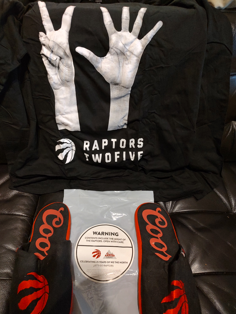 #freecycle new Toronto Raptors swag pack. LG black long sleeve shirt with black slippers.