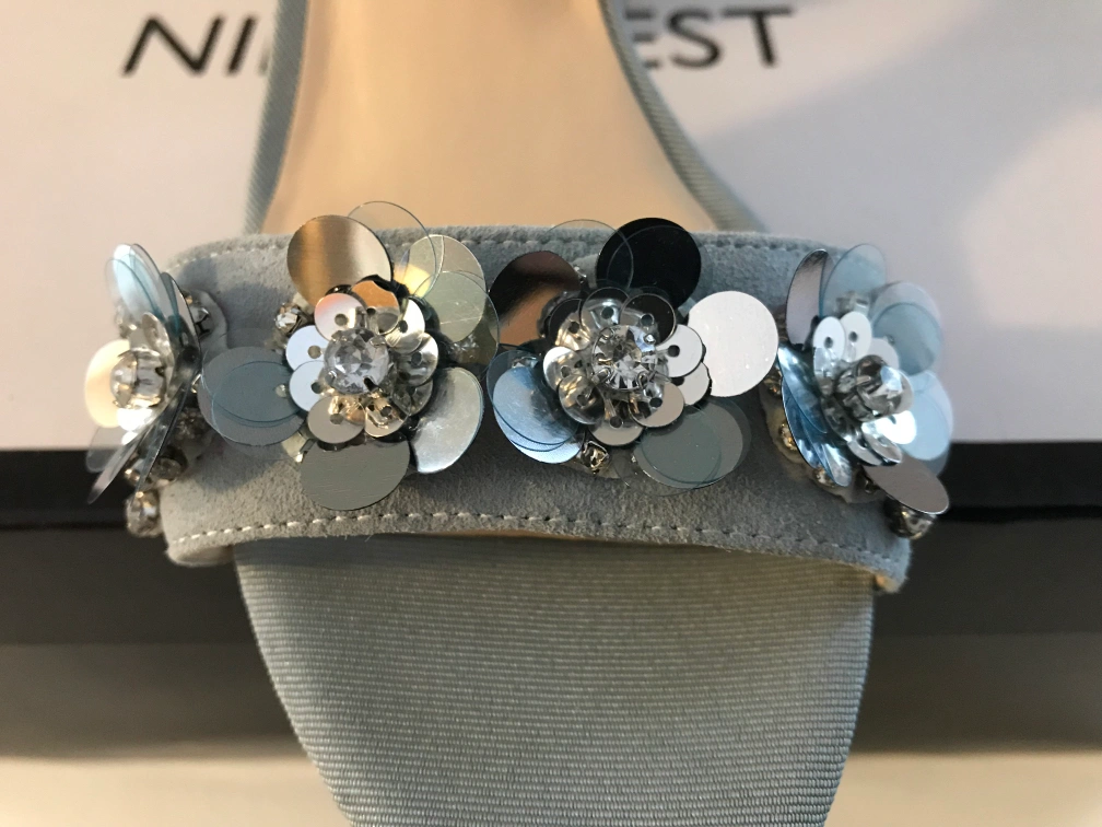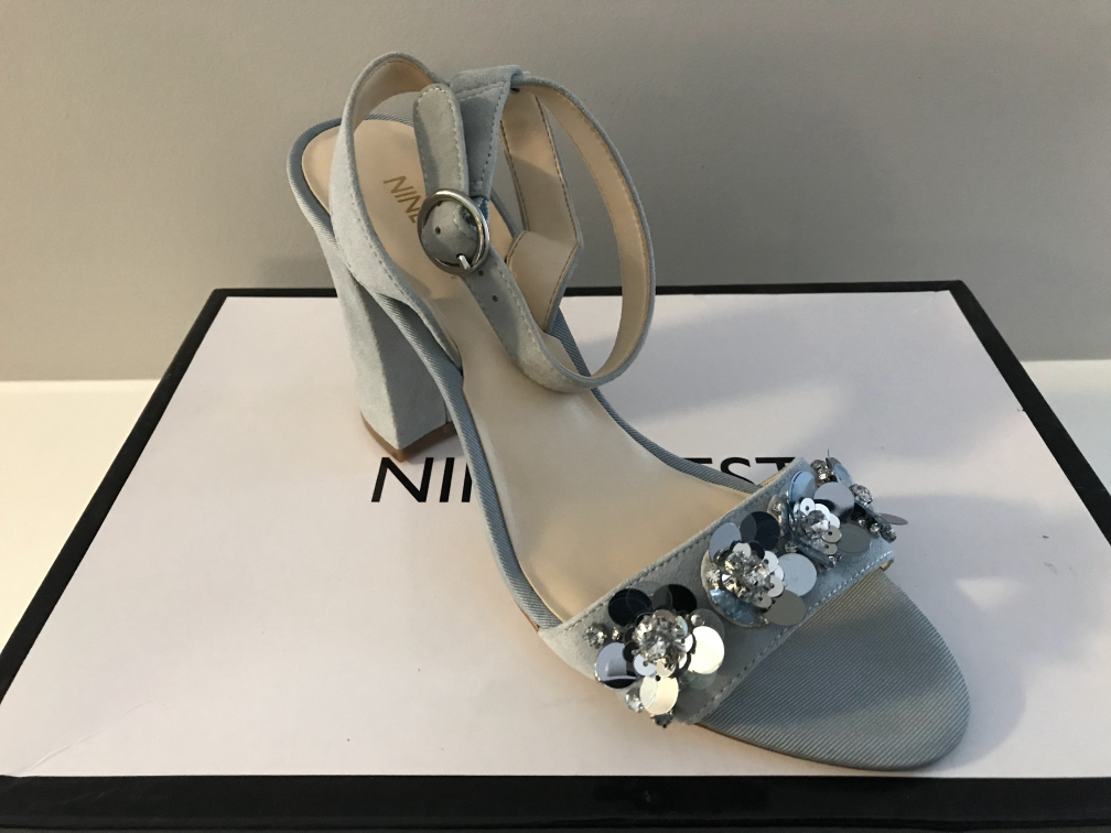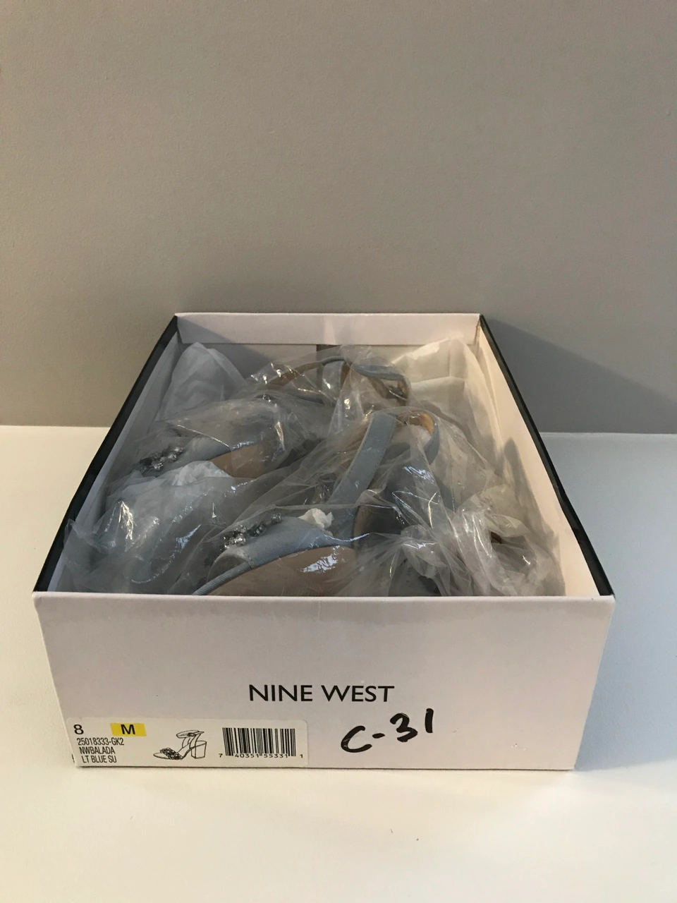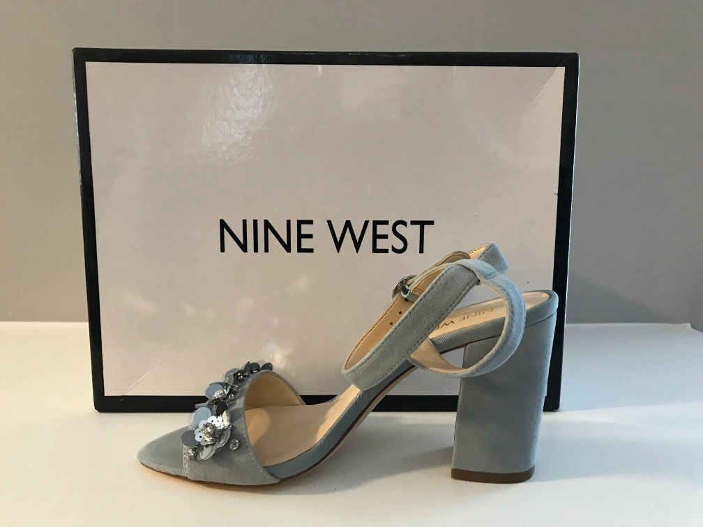 10BNIB! Nine West size 8 Balada suede sandals. But these beautiful baby blue sandals in the wrong size and cannot return them. My losses your gain. Pick up North Milton.