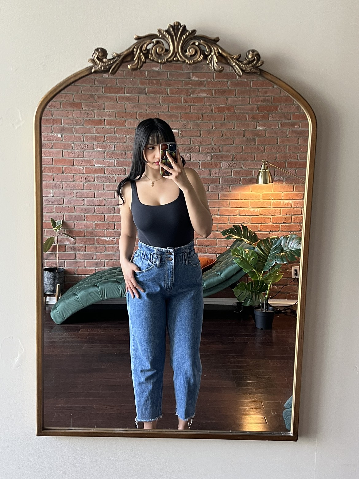 Pre-loved classic blue jeans with a cute waistband detail. Super comfortable for those long summer days out ☀️