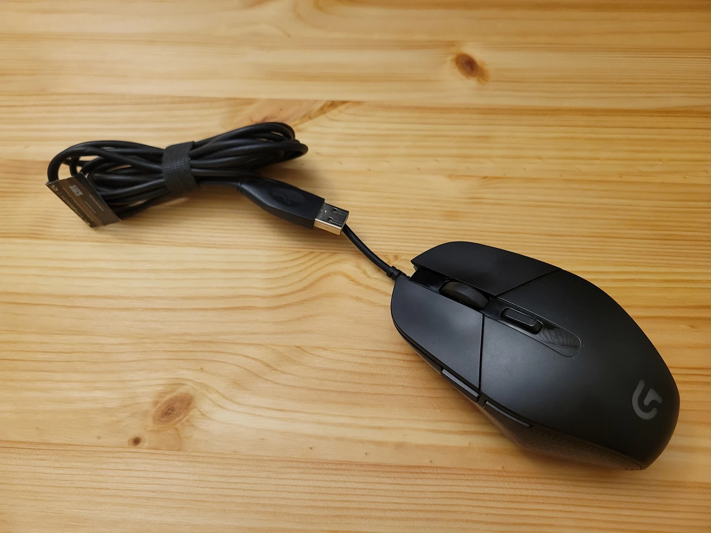 Logitech wired gaming mouse G302, bought it for $50. The 2 thumb buttons are very helpful if your work involve lots of shortcuts - I used them as copy & paste. Many ways to program those buttons.