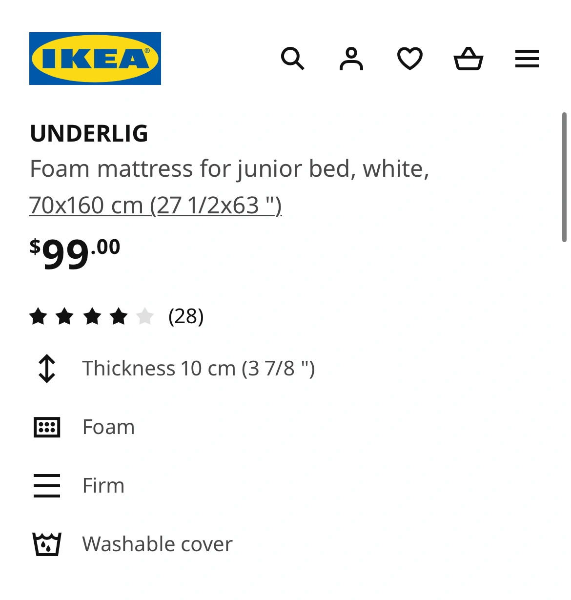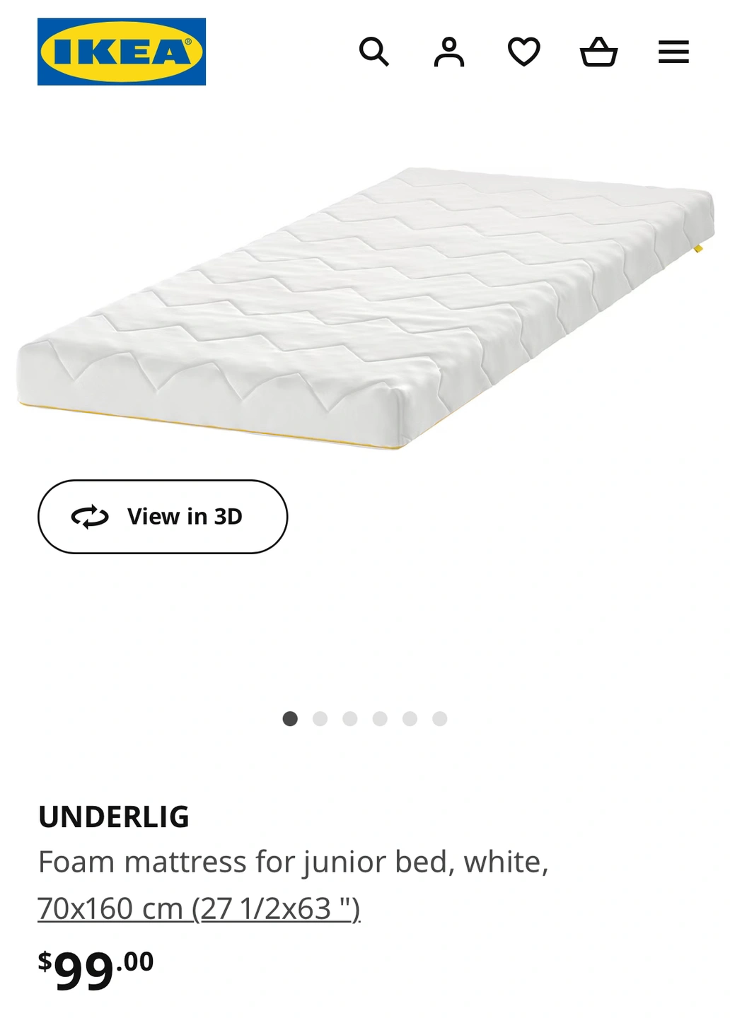 IKEA UNDERLIG white junior bed foam mattress