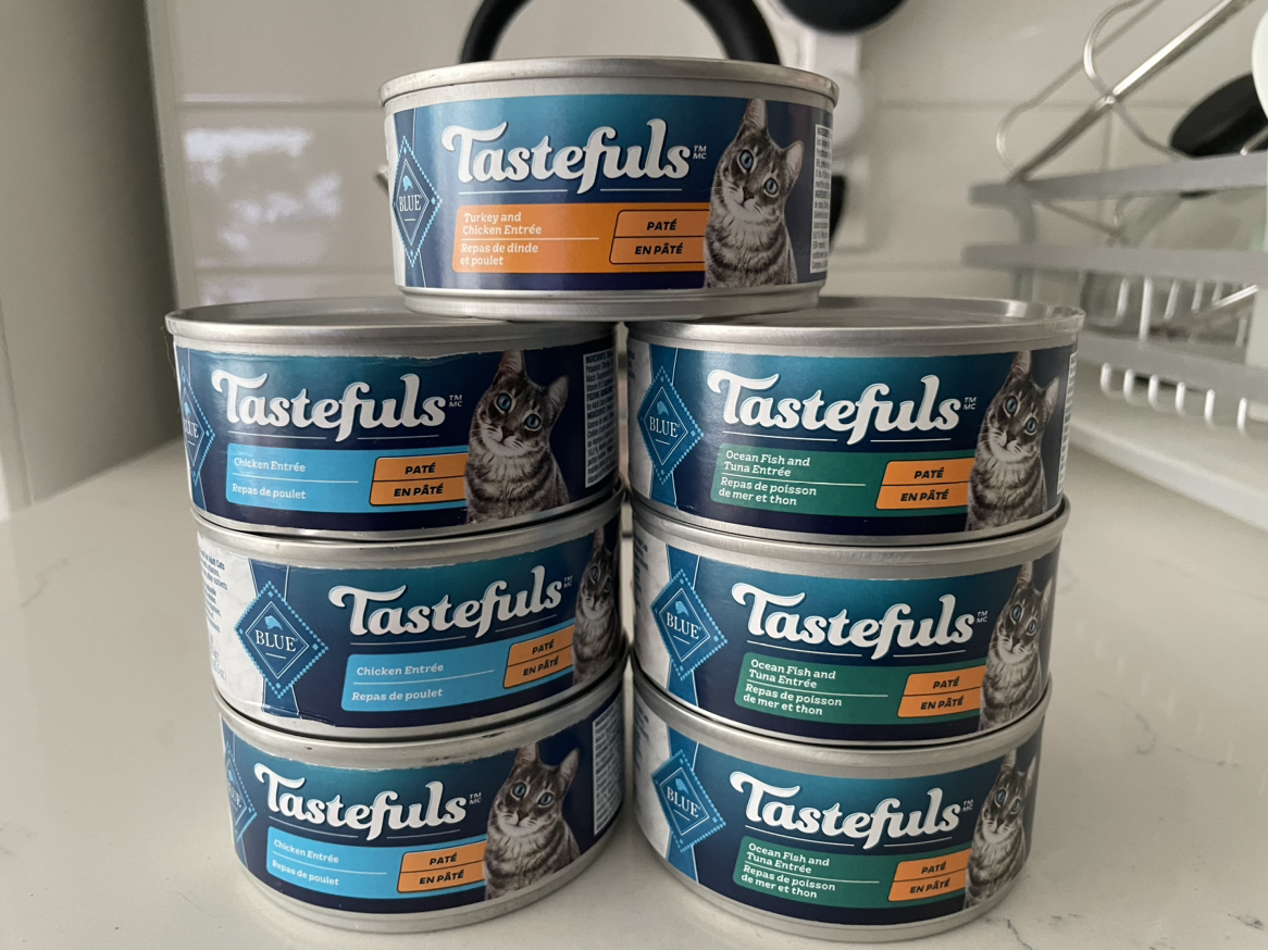 4197 cans of Blue Buffalo tasteful cat food for adults Expiration for them are in 2026 Flavours: chicken entree Ocean fish and tuna entree Turkey and chicken entree All for 10 dollars