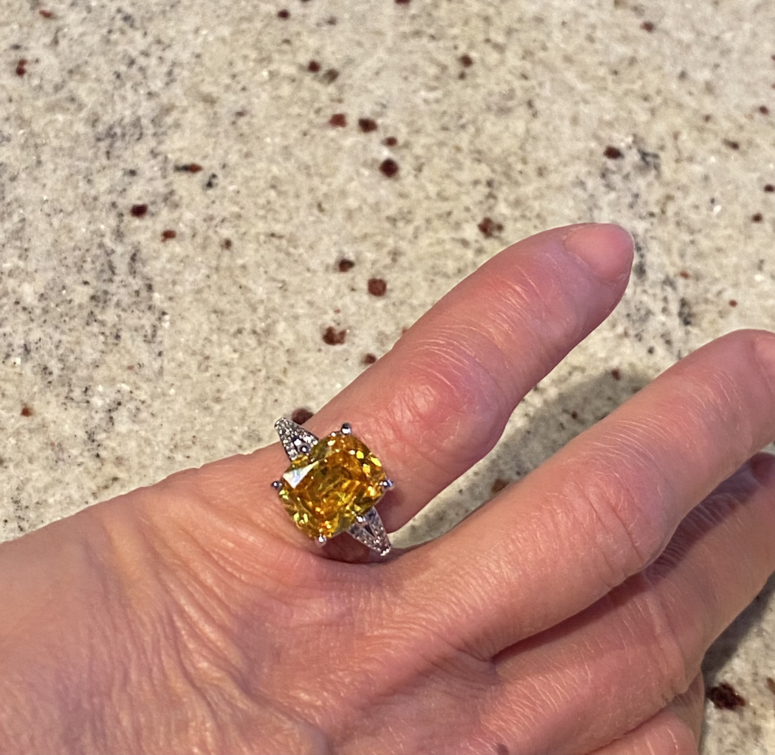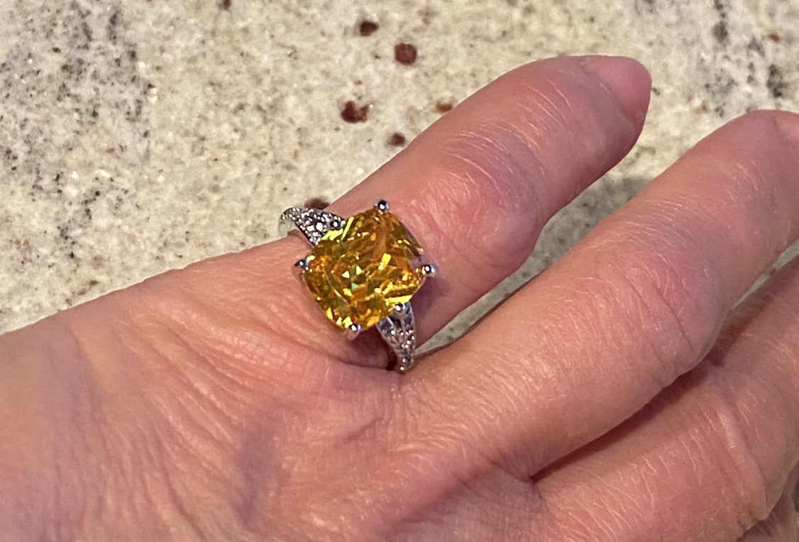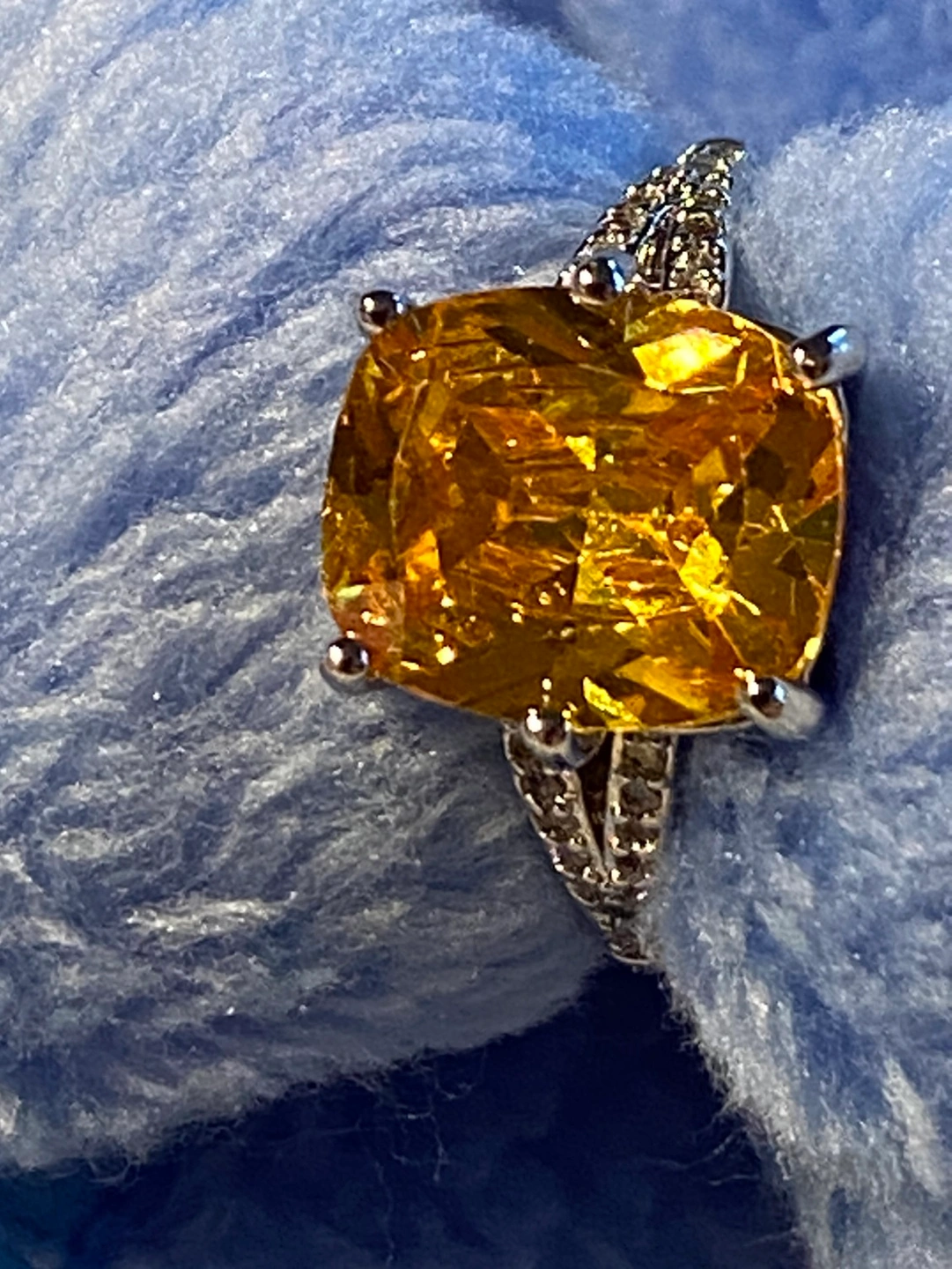 Brand new 925 adjustable ring with a lab citrine. Pick up at Yonge and Bloor.