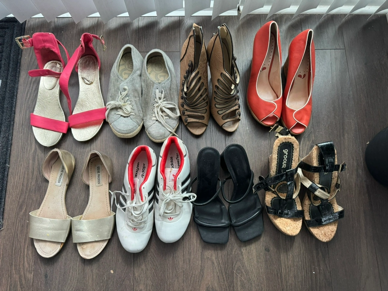 Price is for lot Some shoes like new Pink Guess sandals top L are size 8 Bakers, Guess, steve Madden, Diesel, addidas, Forever 21, Portia, Groove